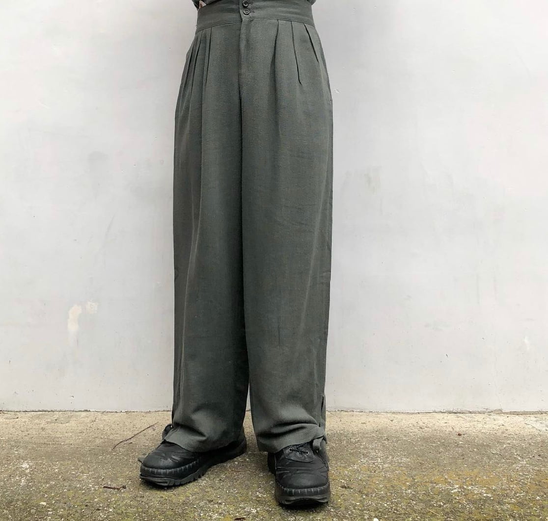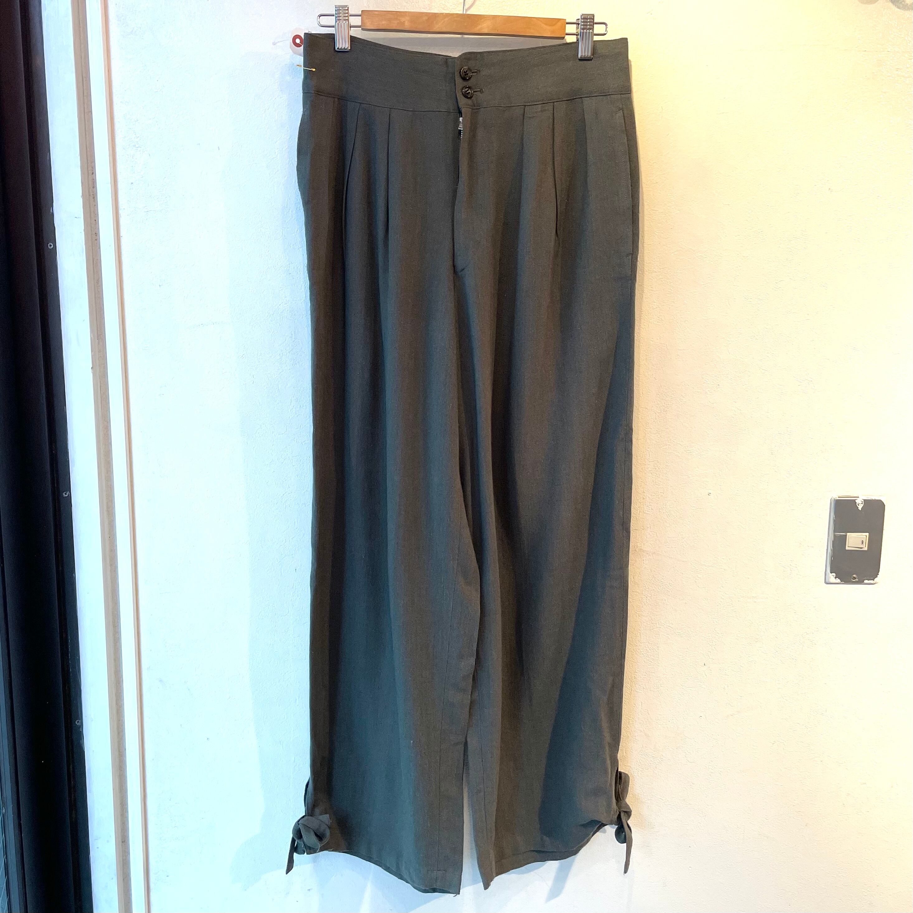 "GARÇONS HOMME PLUS" Khaki rayon/linen design 3-tuck slack pants