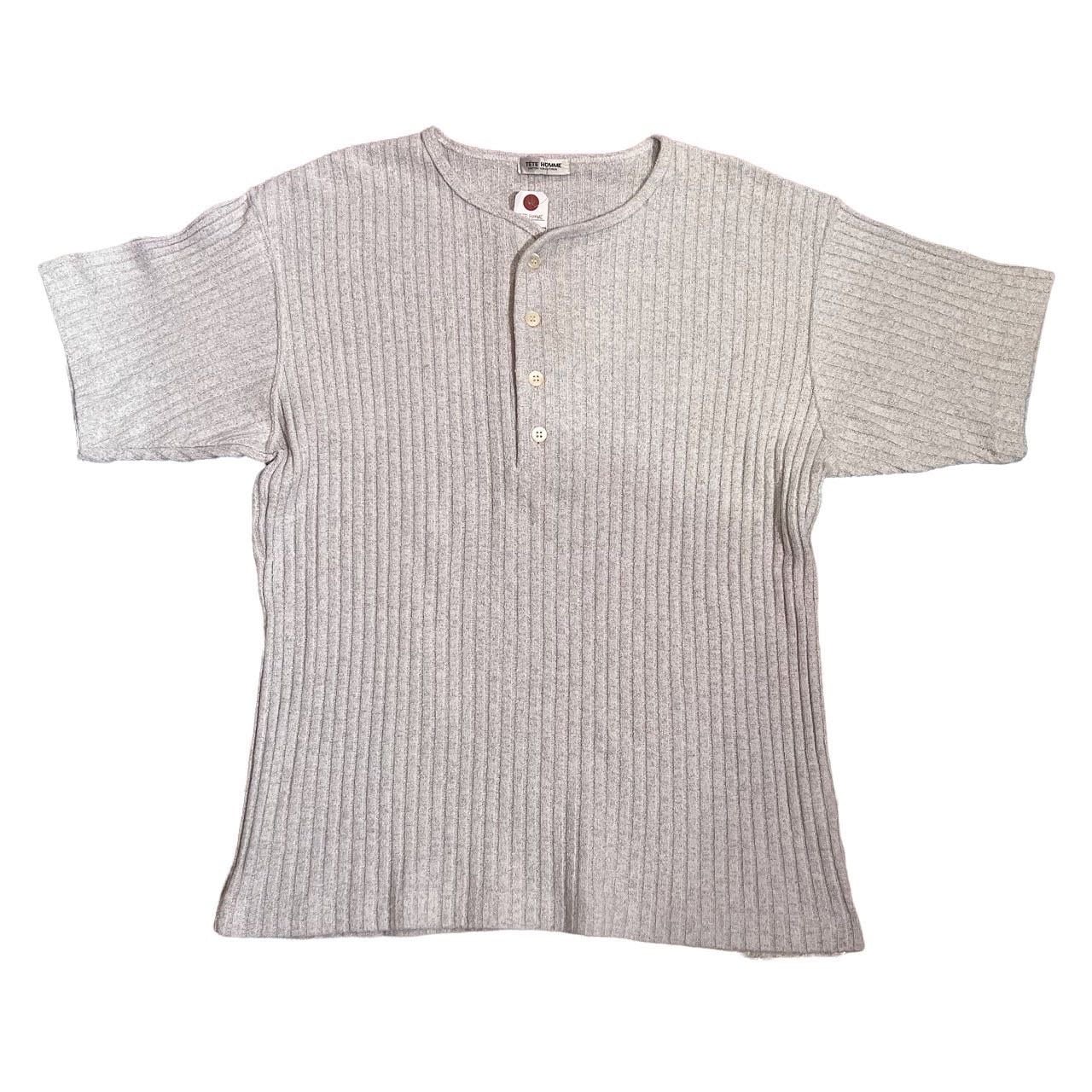 "TETE HOMME" Gray cotton/poly unique fabric design S/S henry neck tee