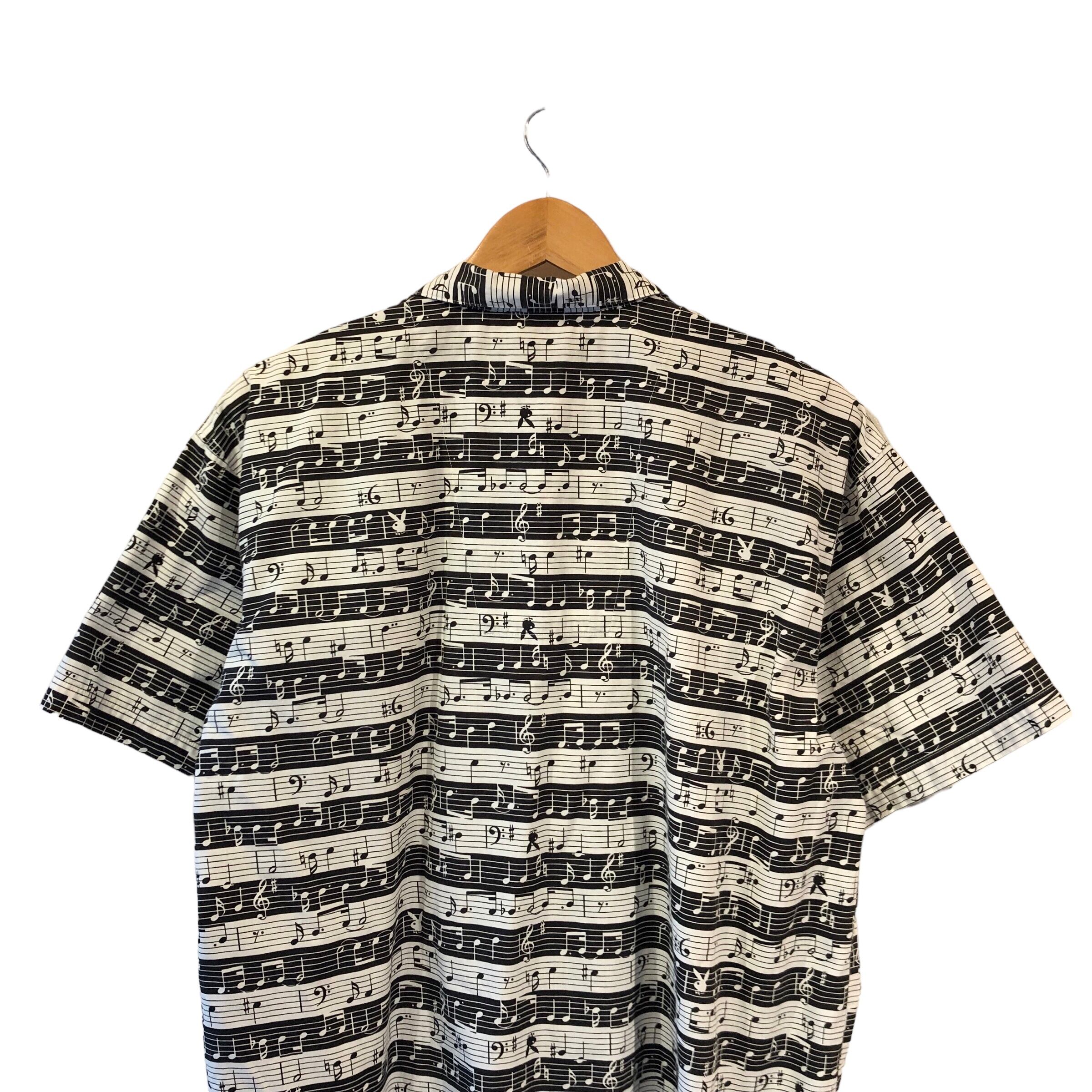 "PLAY BOY" Black×white base Music score pattern cotton S/S open collar shirt