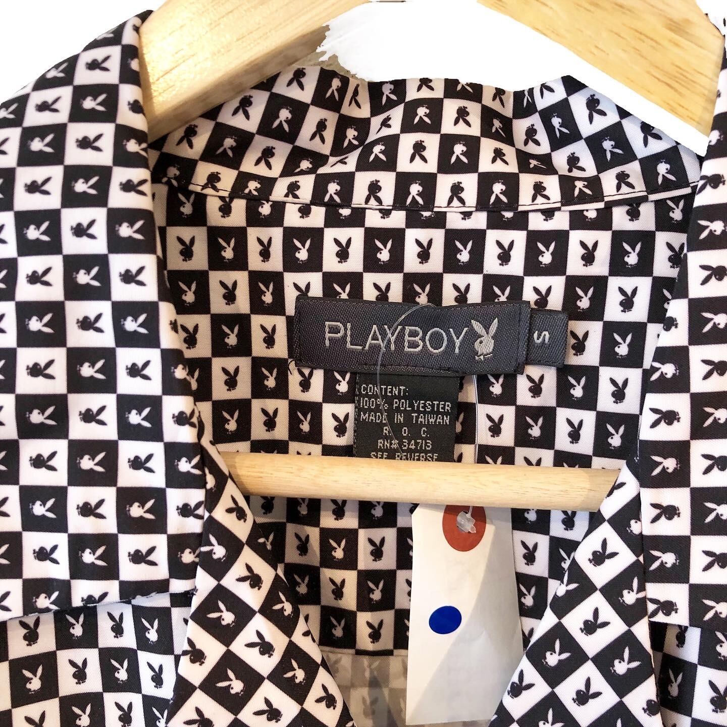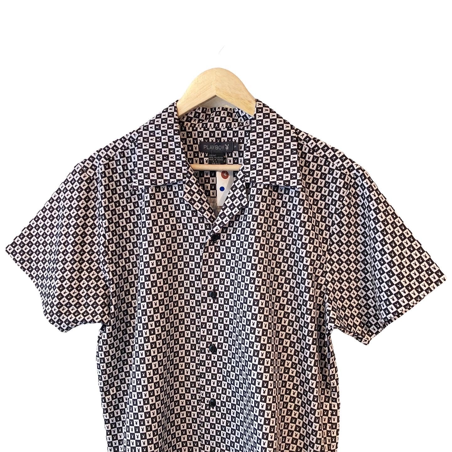 "PLAY BOY" Rabbit head pattern polyester S/S open collar shirt