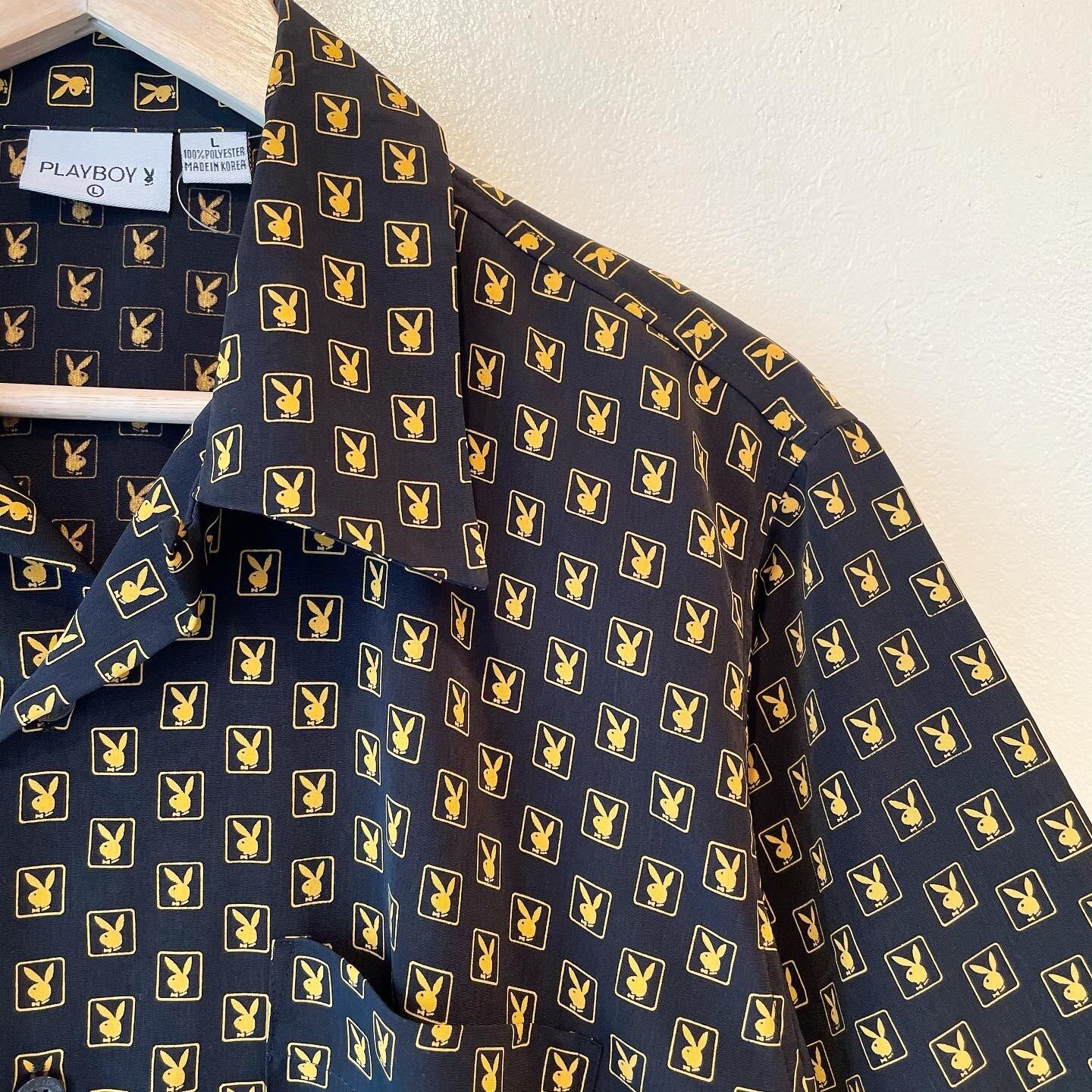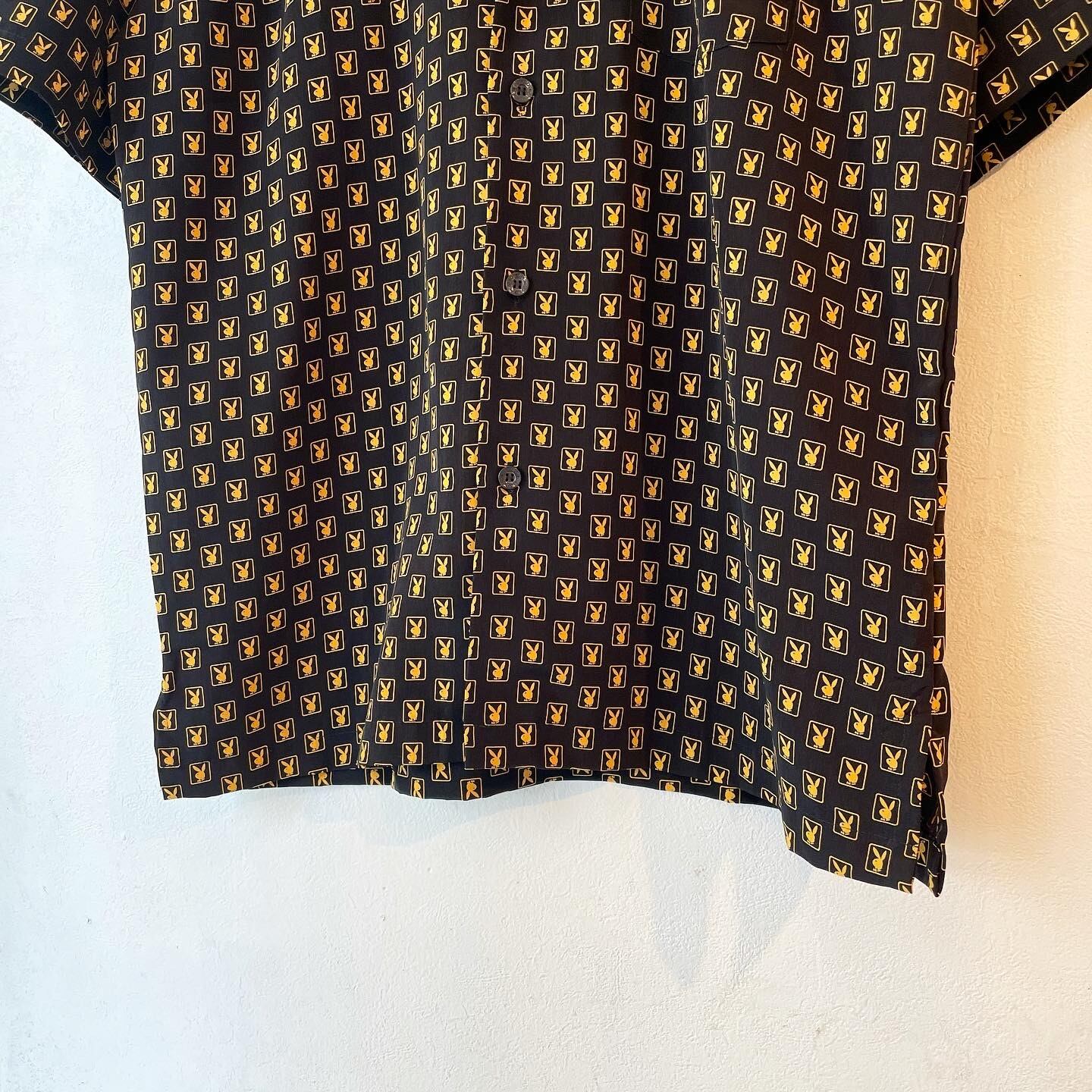 "PLAY BOY" Black×Yellow Rabbit head pattern polyester S/S open collar shirt