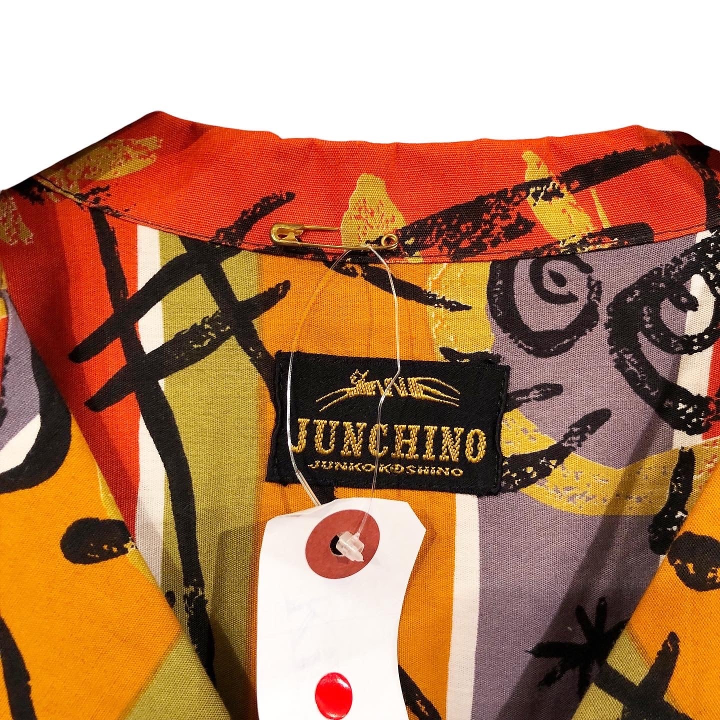 "JUNKO KOSHINO" Unique pattern cotton design S/S open collar shirt
