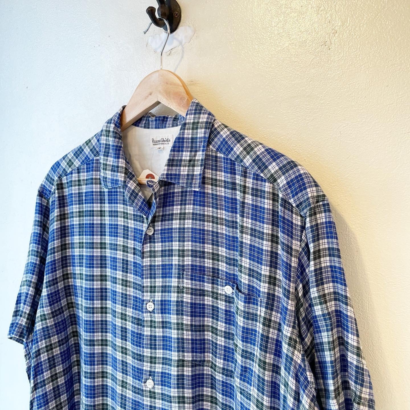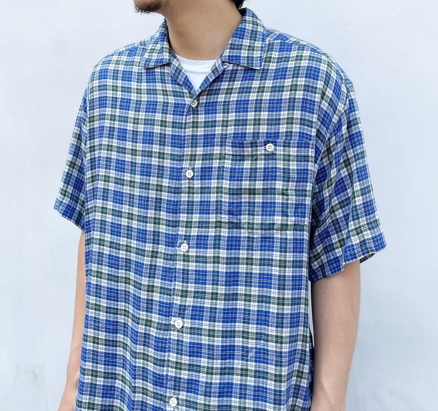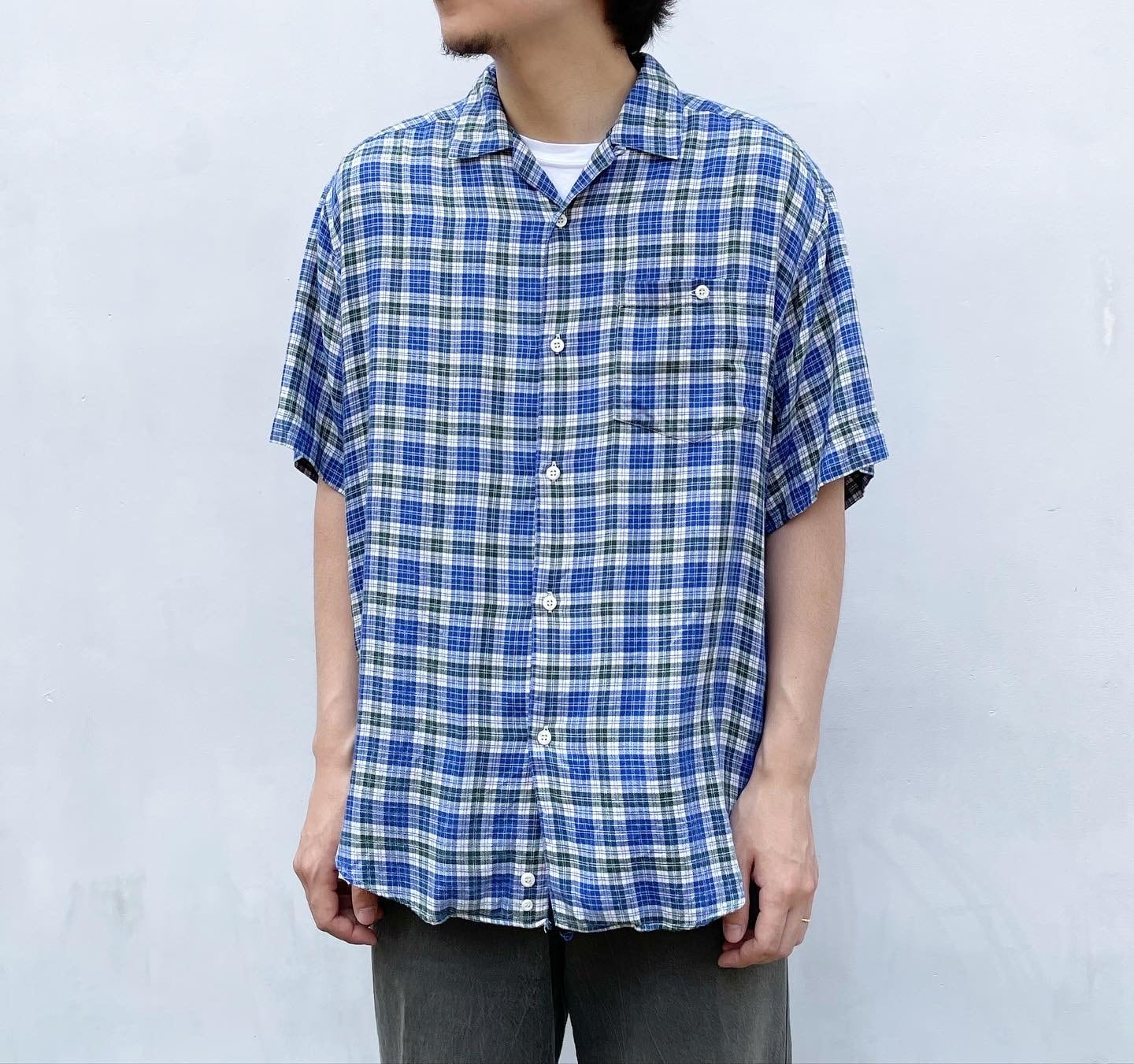 "PAZZO" Check cotton design S/S open collar shirt