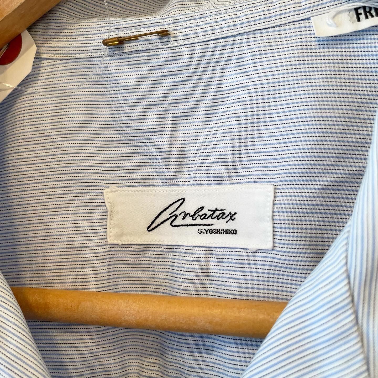 "ARBATAX"● Sax blue cotton stripe design S/S open collar shirt