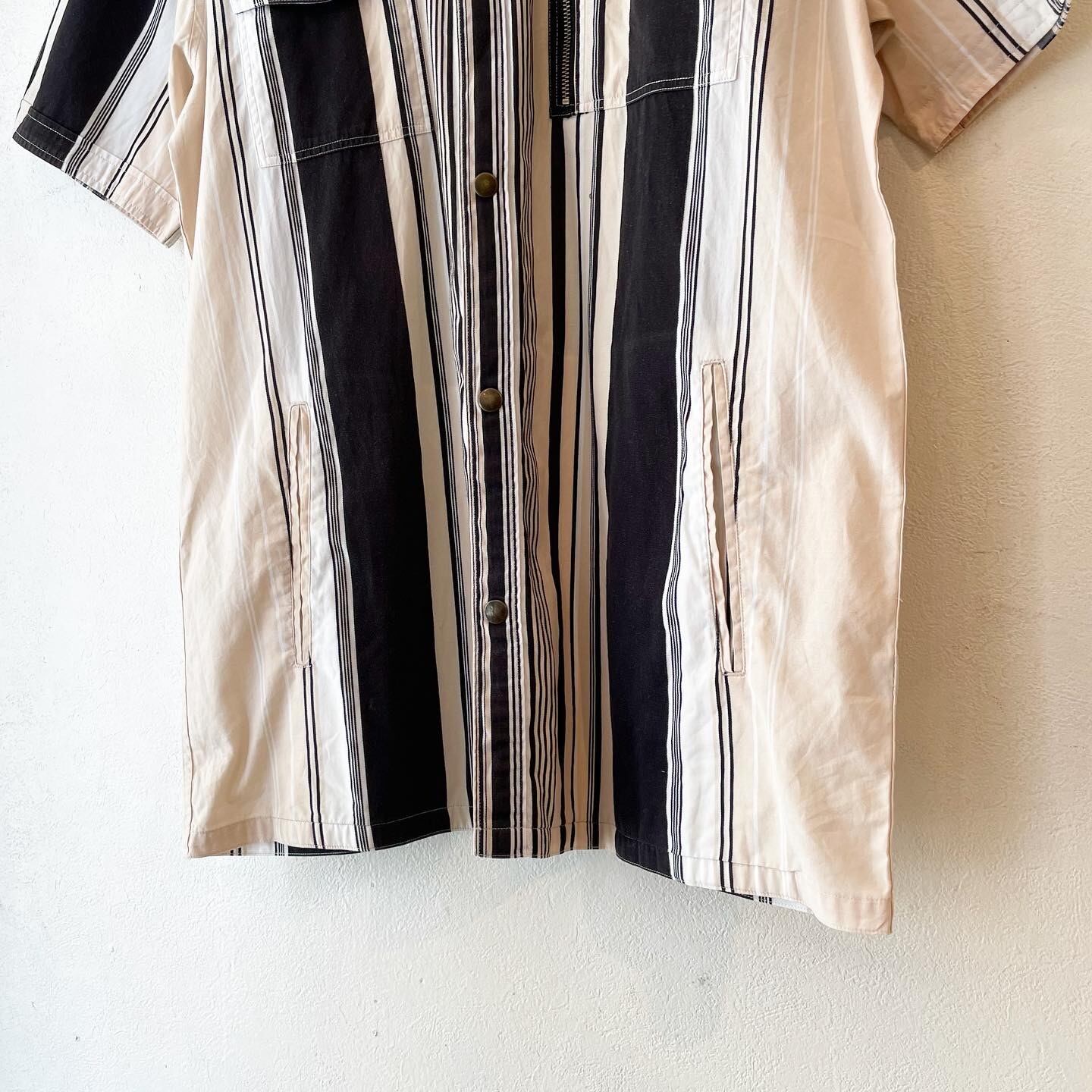 "COMME CA DU MODE" Light beige×black cotton design L/S multi stripe shirt