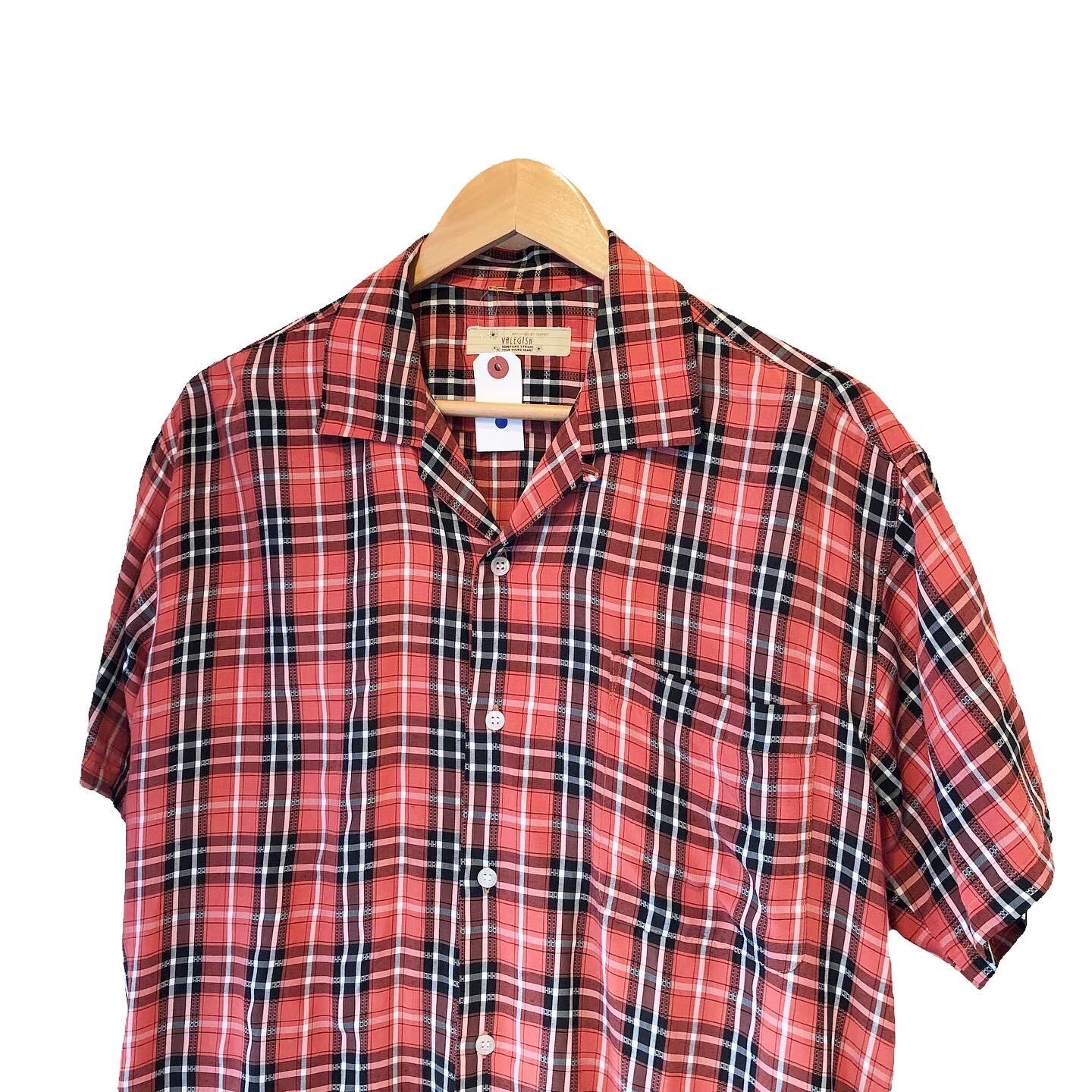 "VALEGISH" check acetate×rayon design S/S open collar shirt
