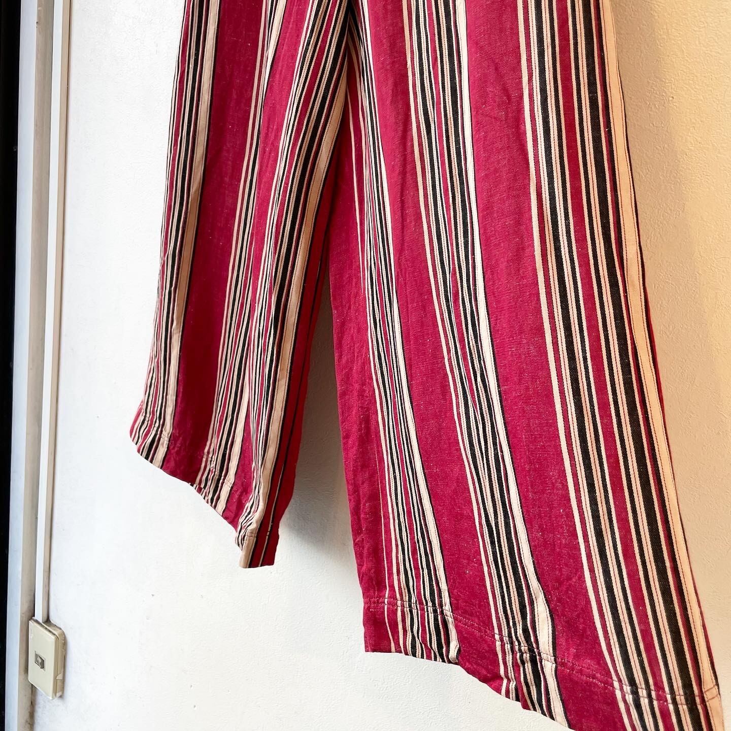 "HIROKO BIS" Multi stripe rayon design cropped easy wide pants