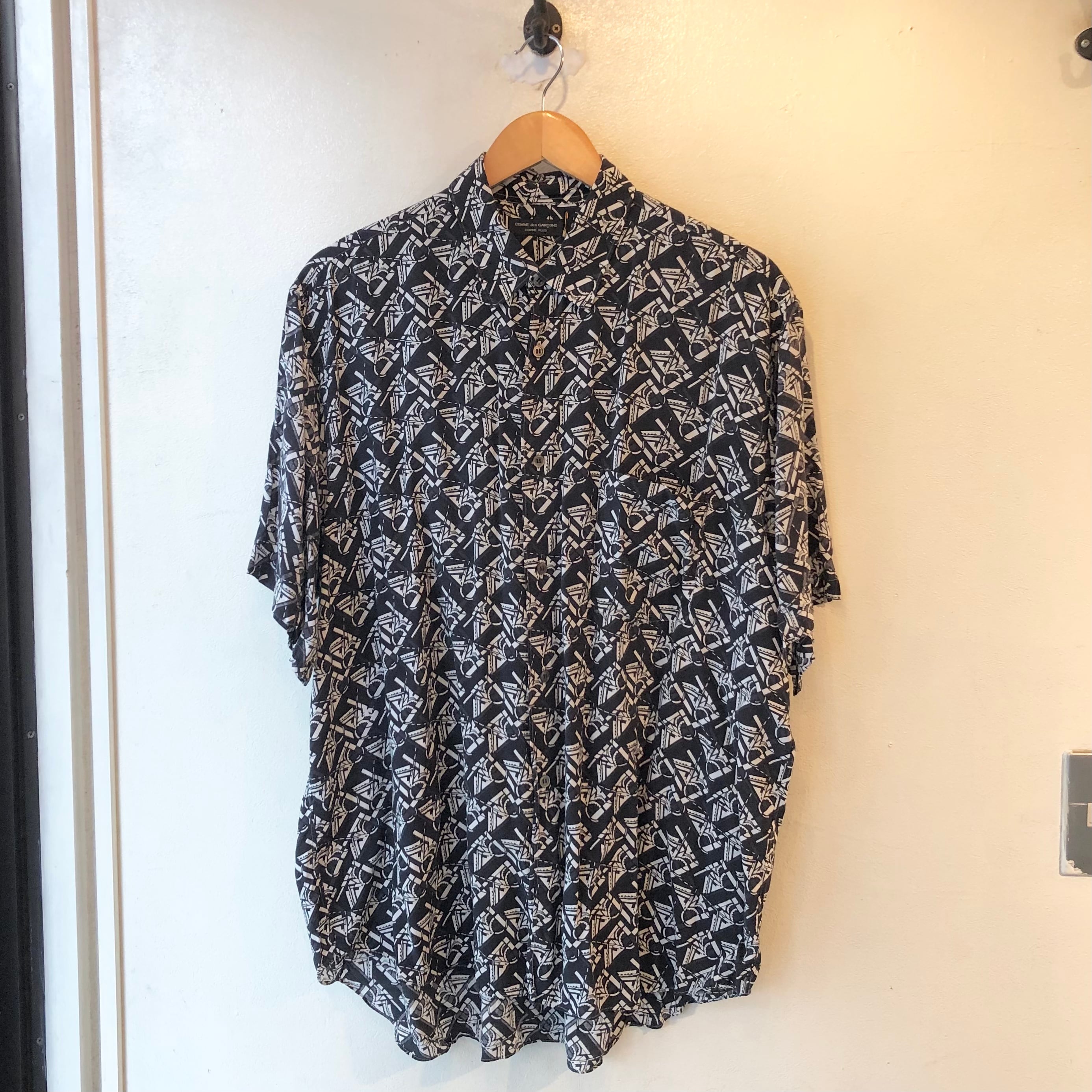 "GARÇONS HOMME PLUS" Unique pattern rayon design S/S oversize shirt