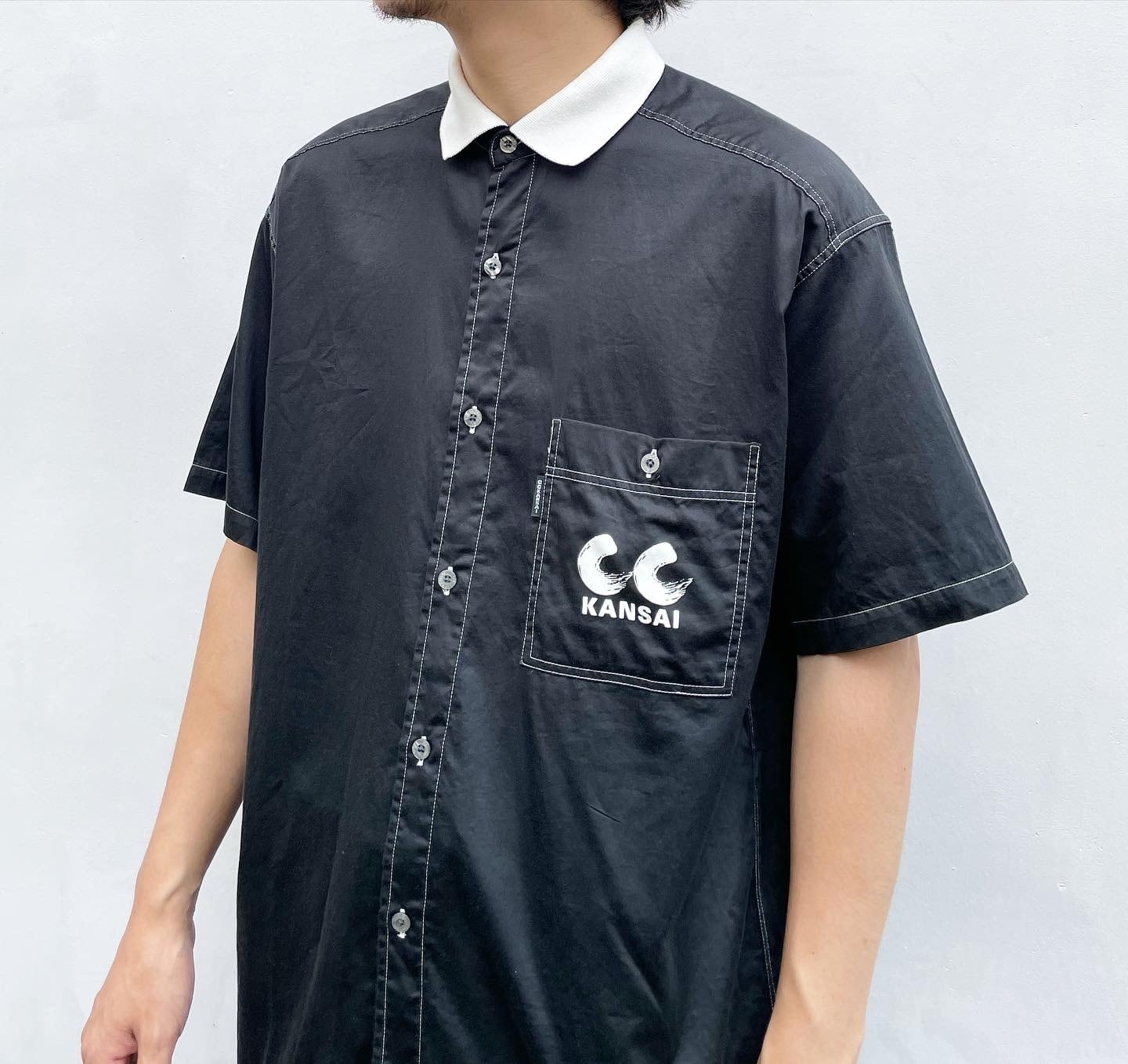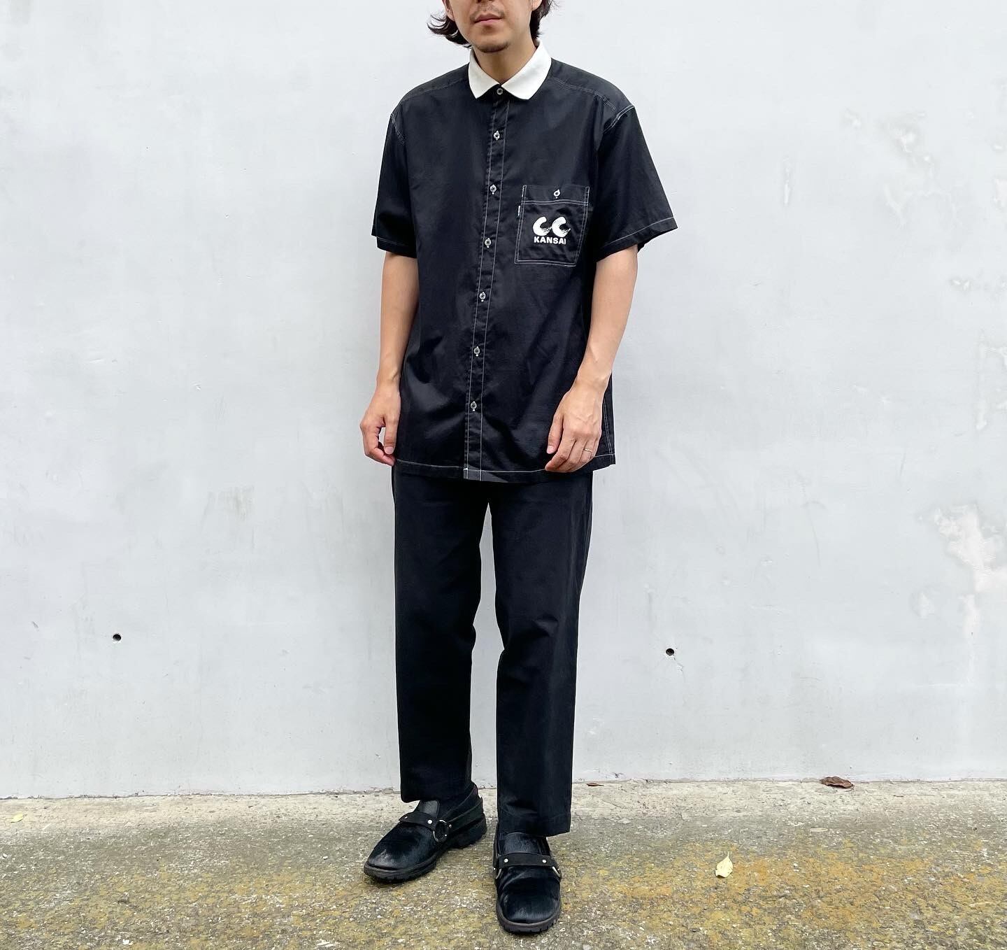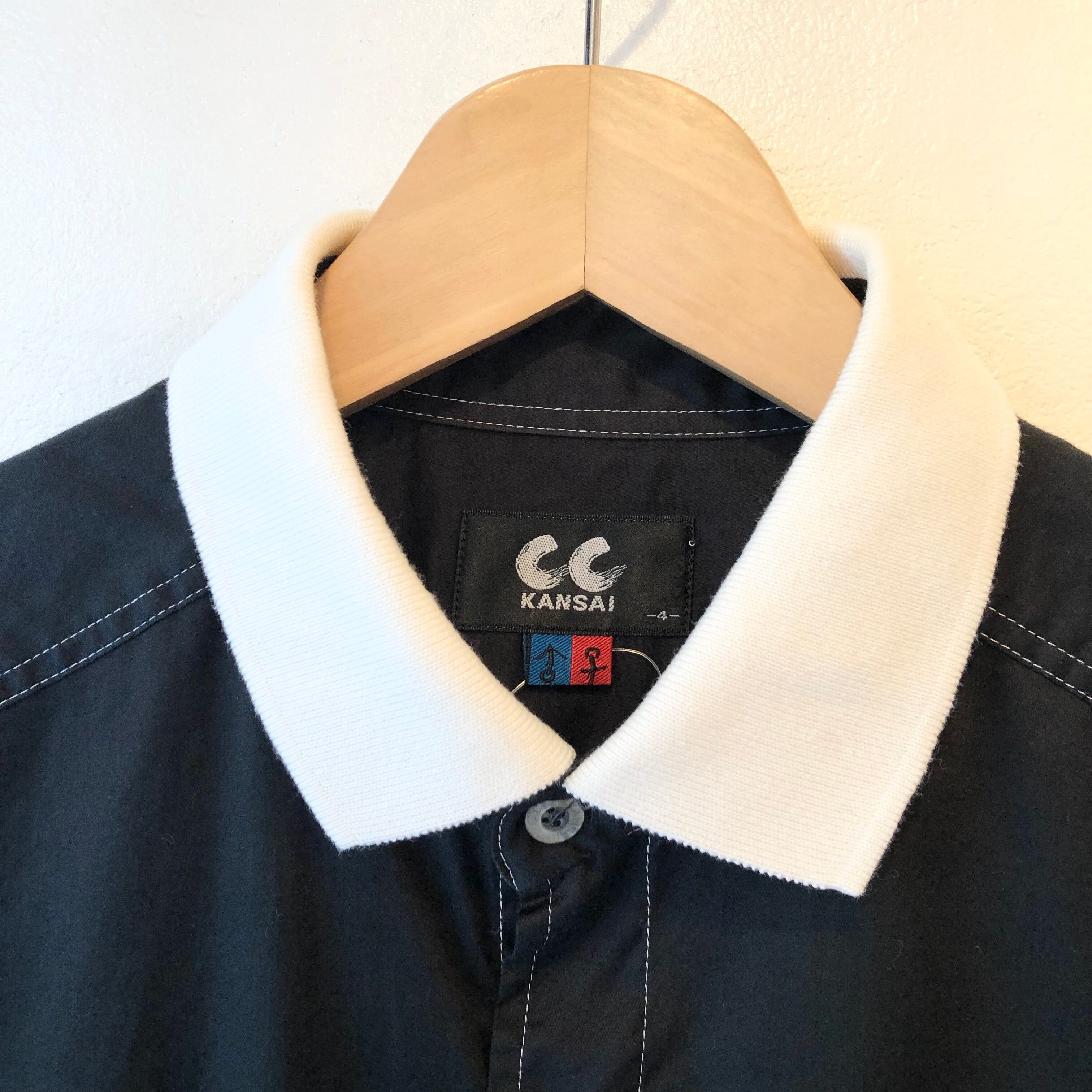 "CC KANSAI" Black cotton design S/S switch collar shirt