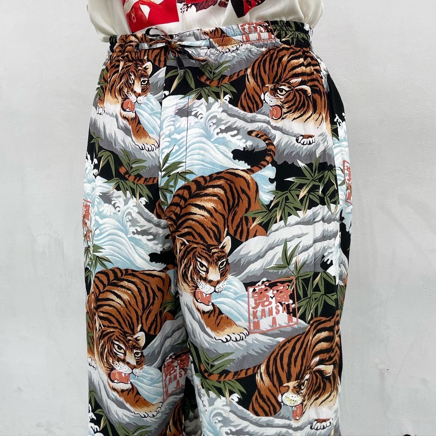 "KANSAI MAN" Japanese tiger pattern design easy rayon shorts