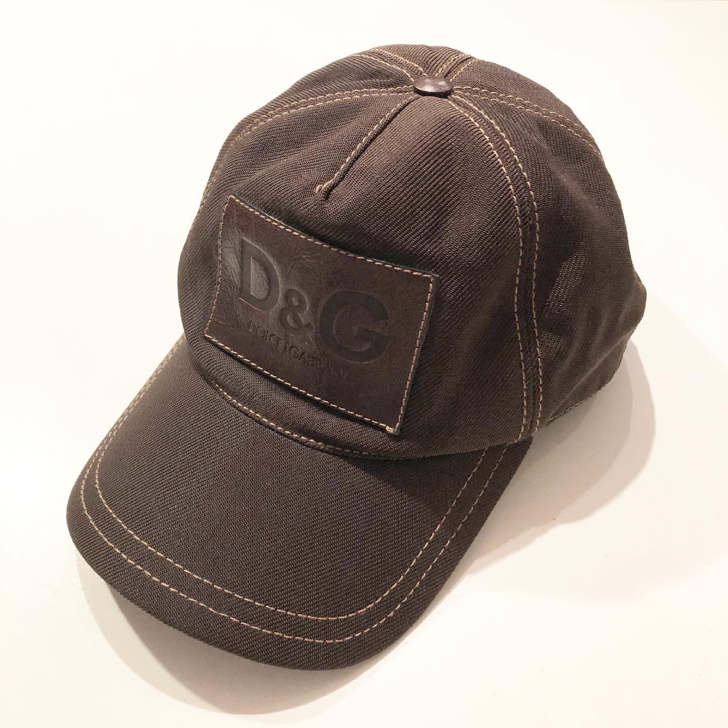 "D&G" Brown nylon design logo patch cap