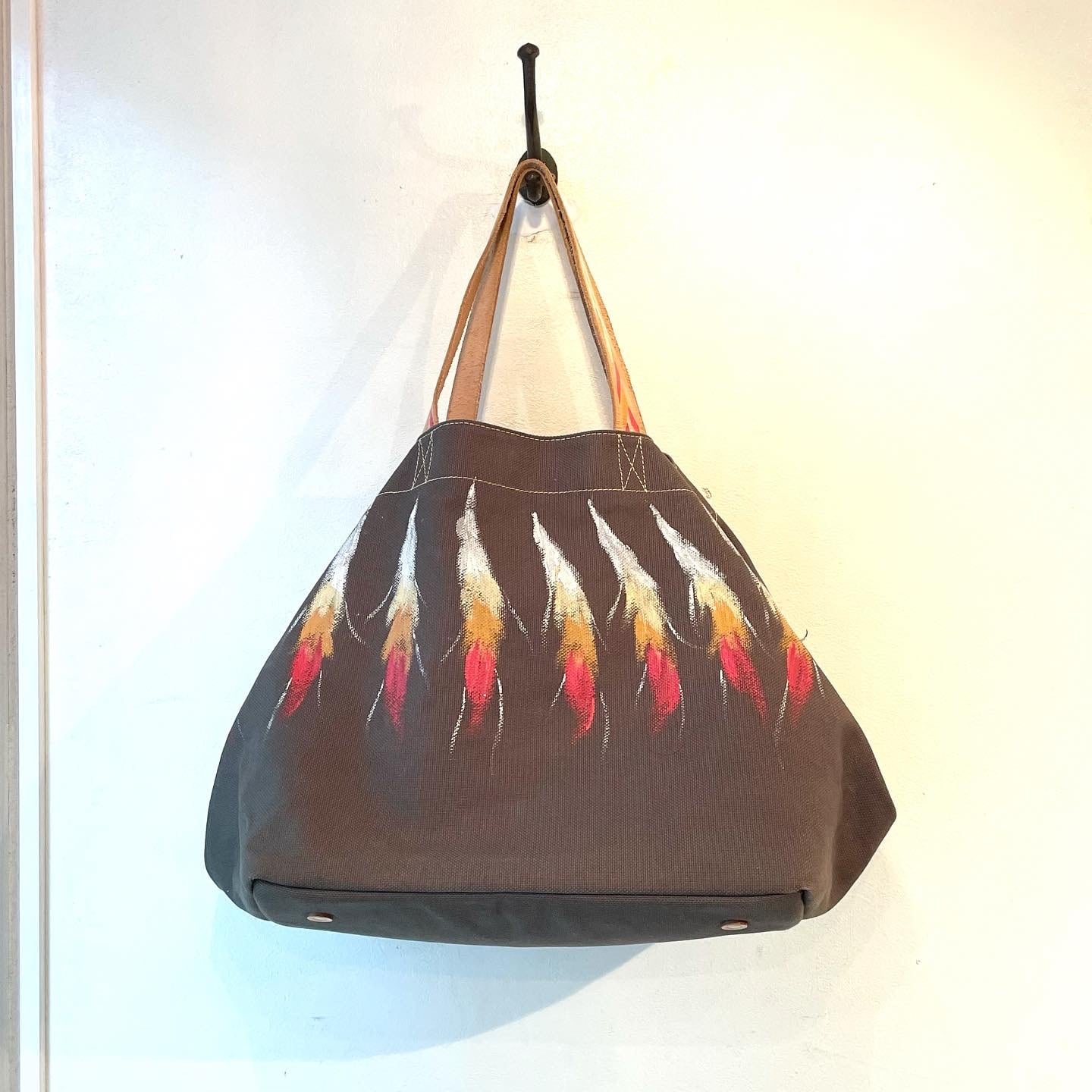 "ISSEY MIYAKE FETE" cotton/nylon/leather design hand painted bag