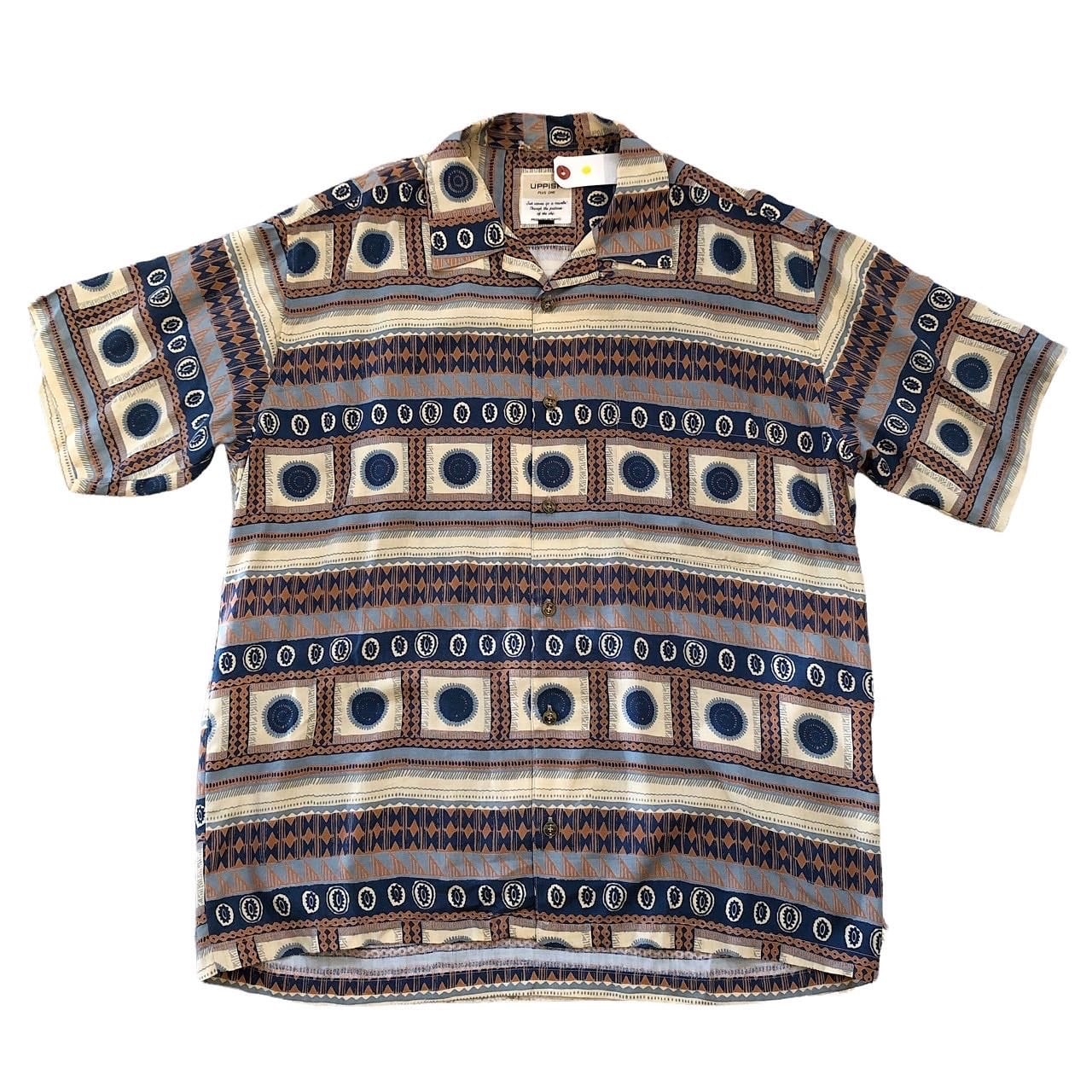 "UPPISH" unique pattern rayon design S/S open collar shirt