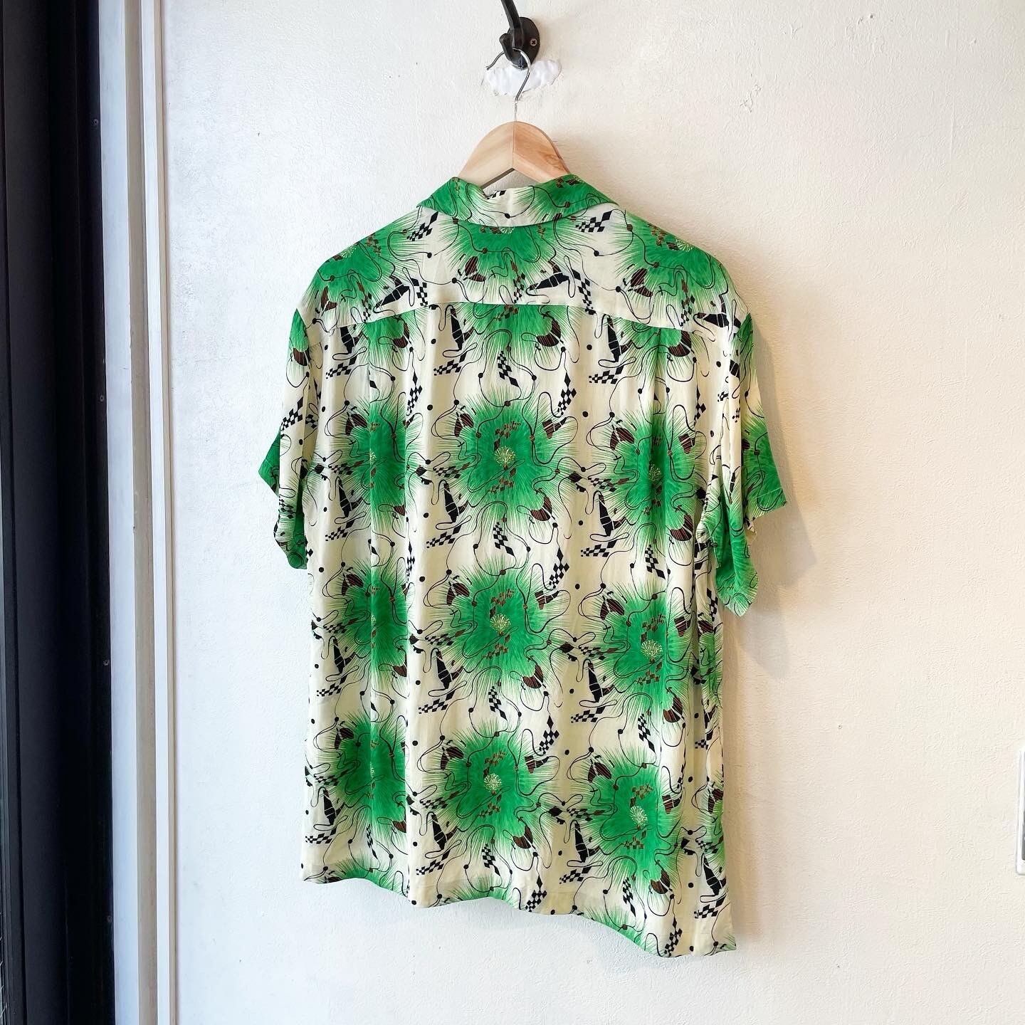 "TETE HOMME" Art pattern rayon design S/S open collar shirt