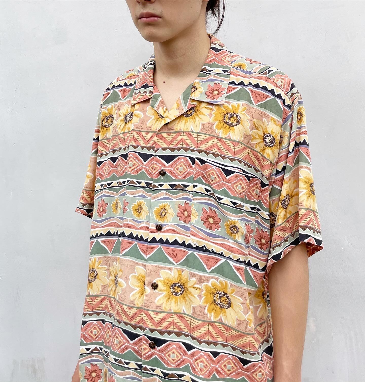 "UPPISH" Flower pattern rayon design S/S open collar shirt Made in Japan
