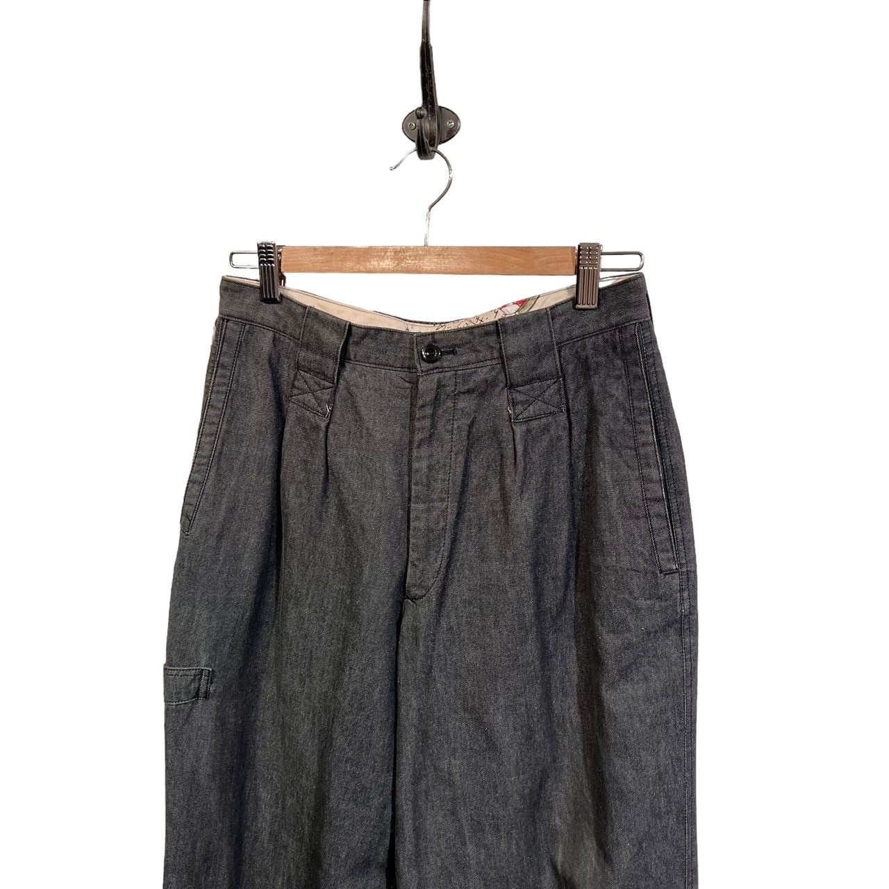 "TETE HOMME" Gray cotton/linen design 2tuck pants