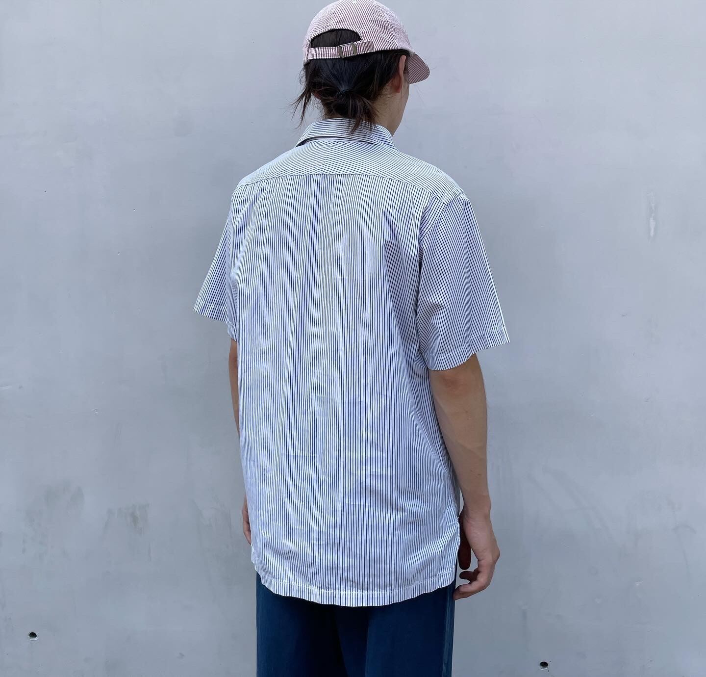 "HAVERSACK" Stripe cotton design S/S skipper pullover shirt