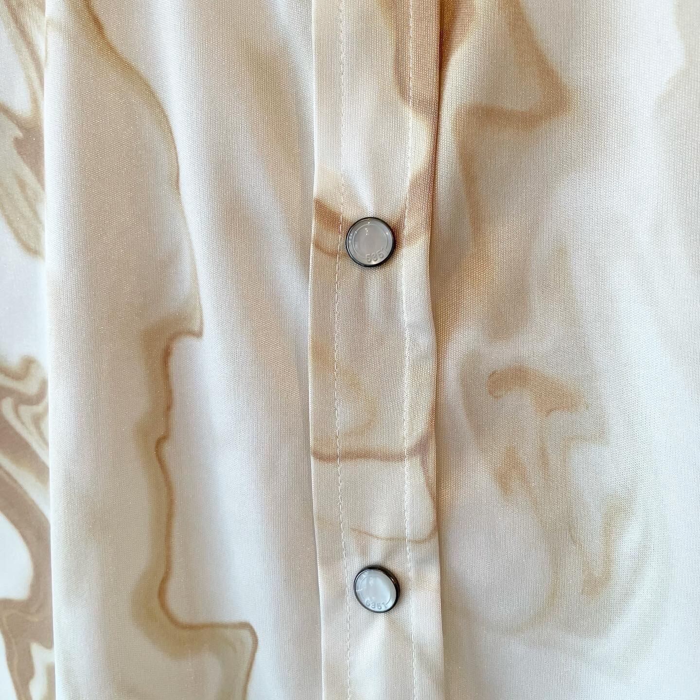 "5351 POUR LES HOMME" marble pattern polyester design S/S snap button shirt