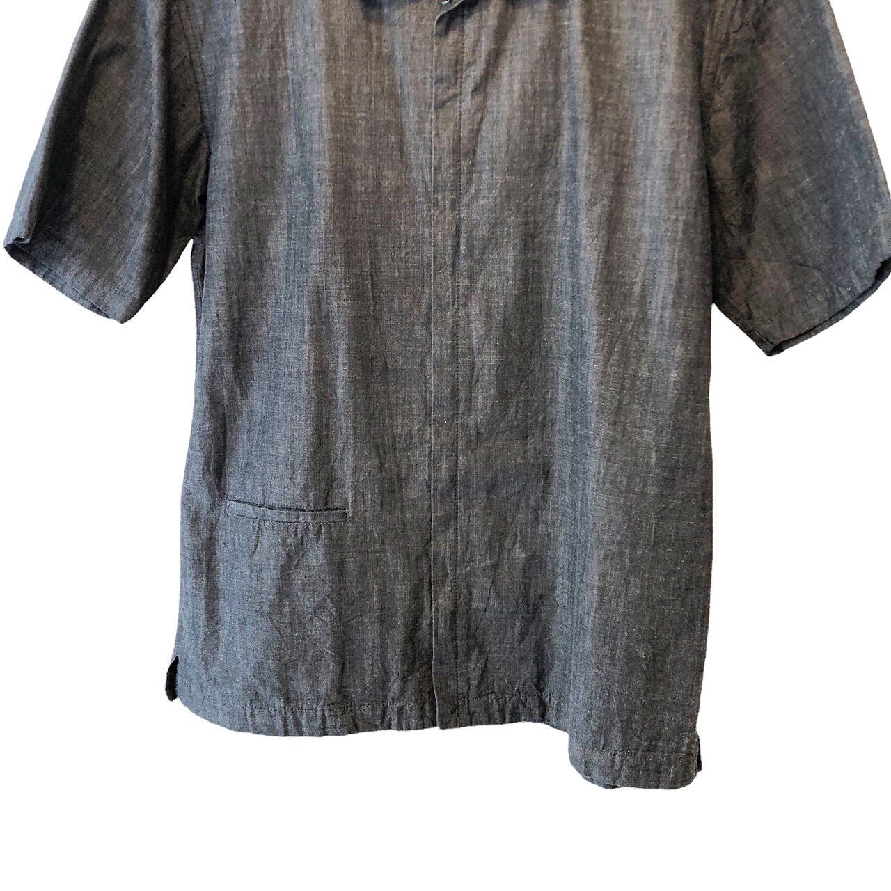 "TETE HOMME" Dark grey cotton design S/S zip up shirt