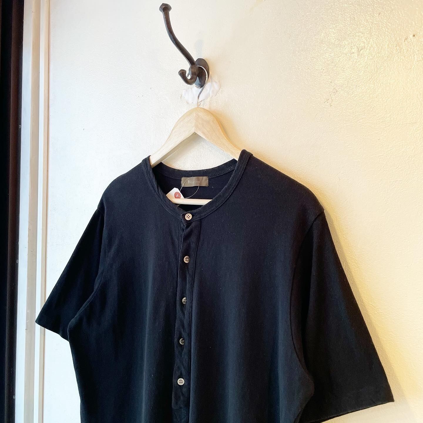 "Y’s for men" “Black cotton design deep Henry neck T-shirt