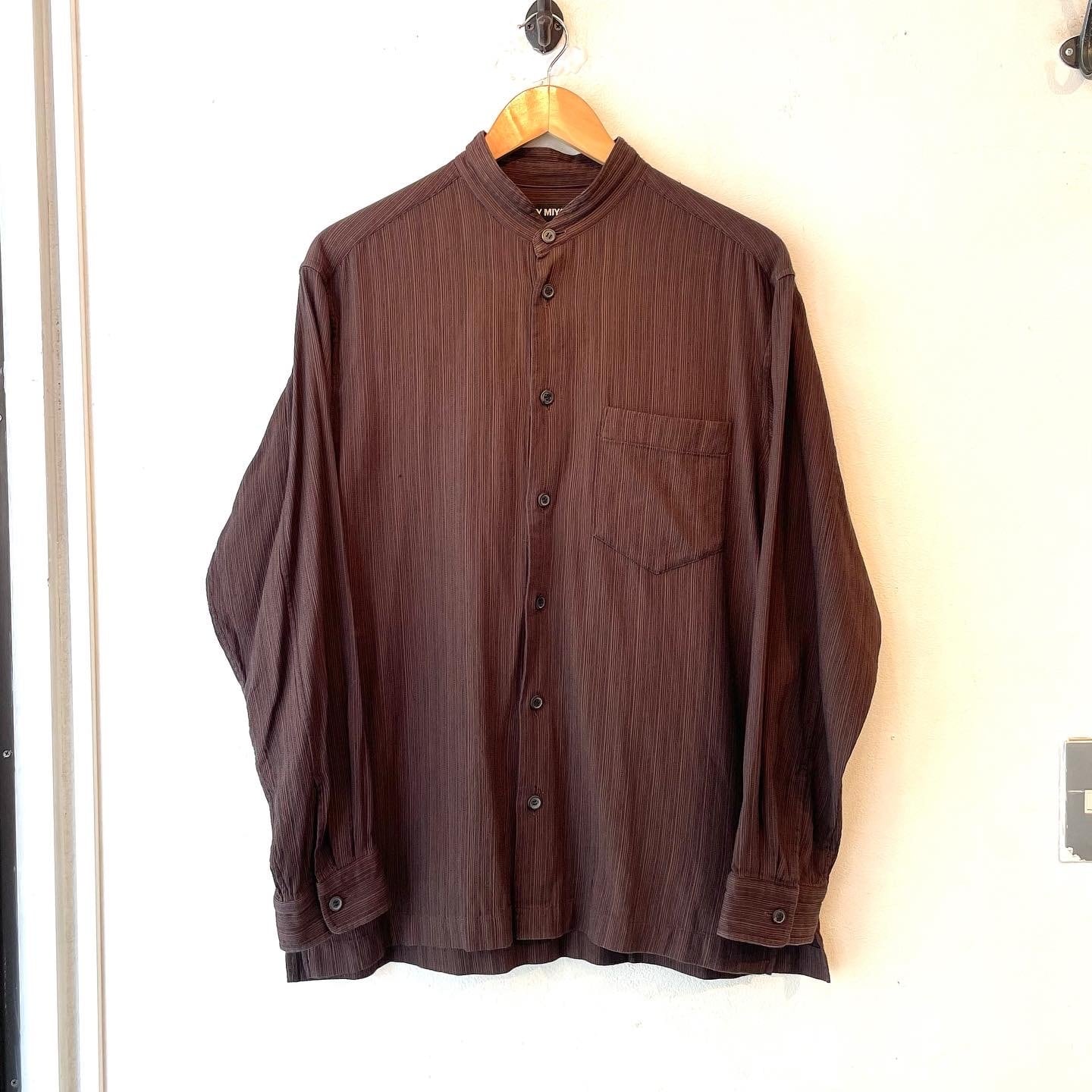"ISSEY MIYAKE" Brown cotton design band collar L/S shirt