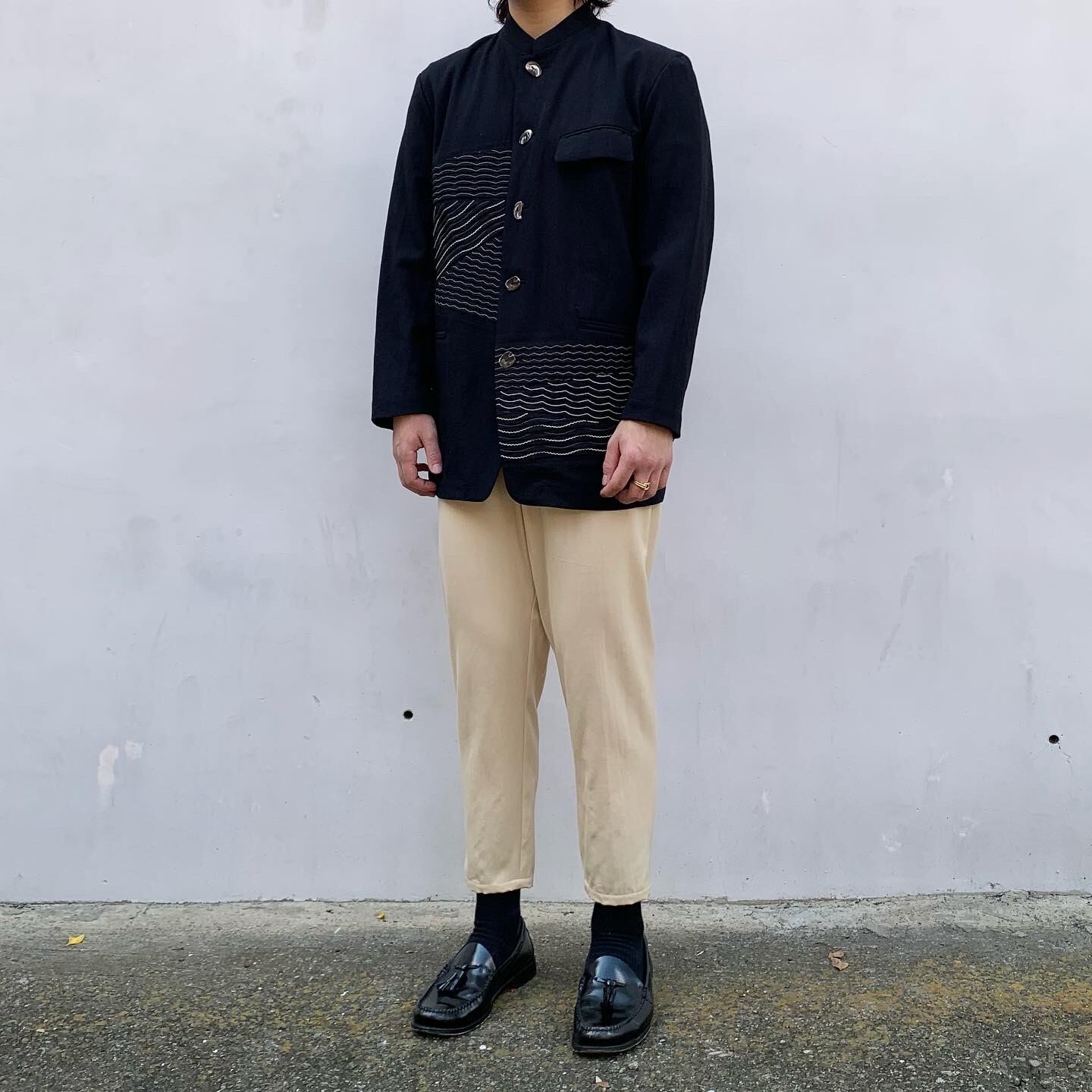 "PASHU" Pin tuck&Stitch poly design mao collar jacket