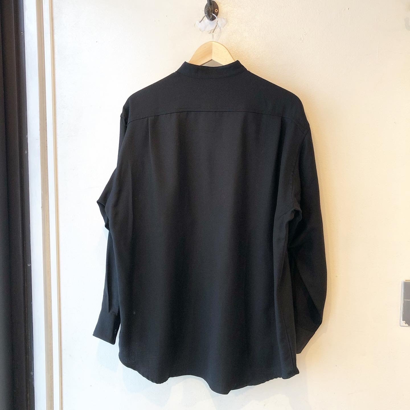 "SUPERIOR" Black wool design L/S band collar shirt