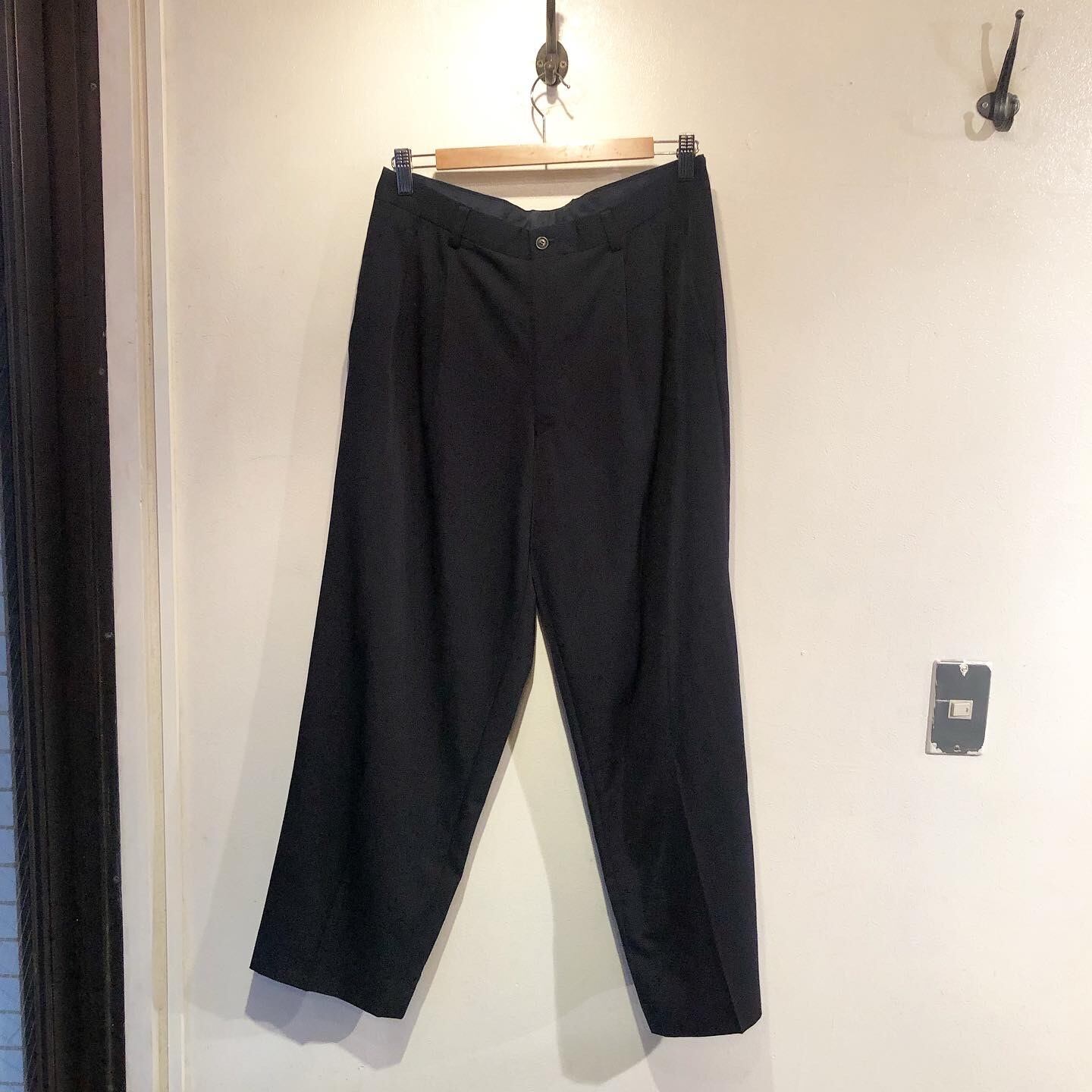 "ISSEY MIYAKE" navy wool gabardine two tuck slacks