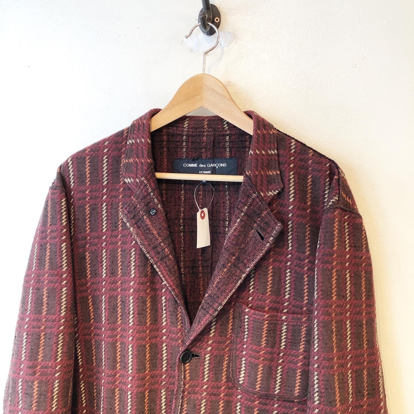 "GARCONS HOMME" Check pattern jacquard design knit jacket