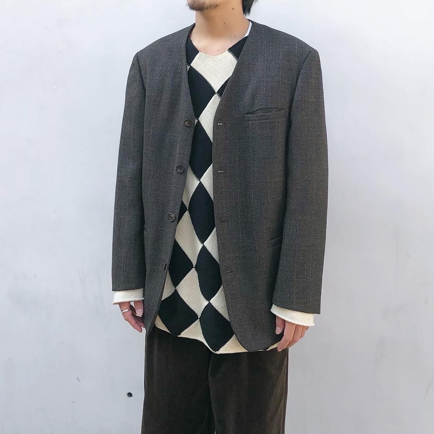 "JUN MEN" Unique pattern wool collar less jacket