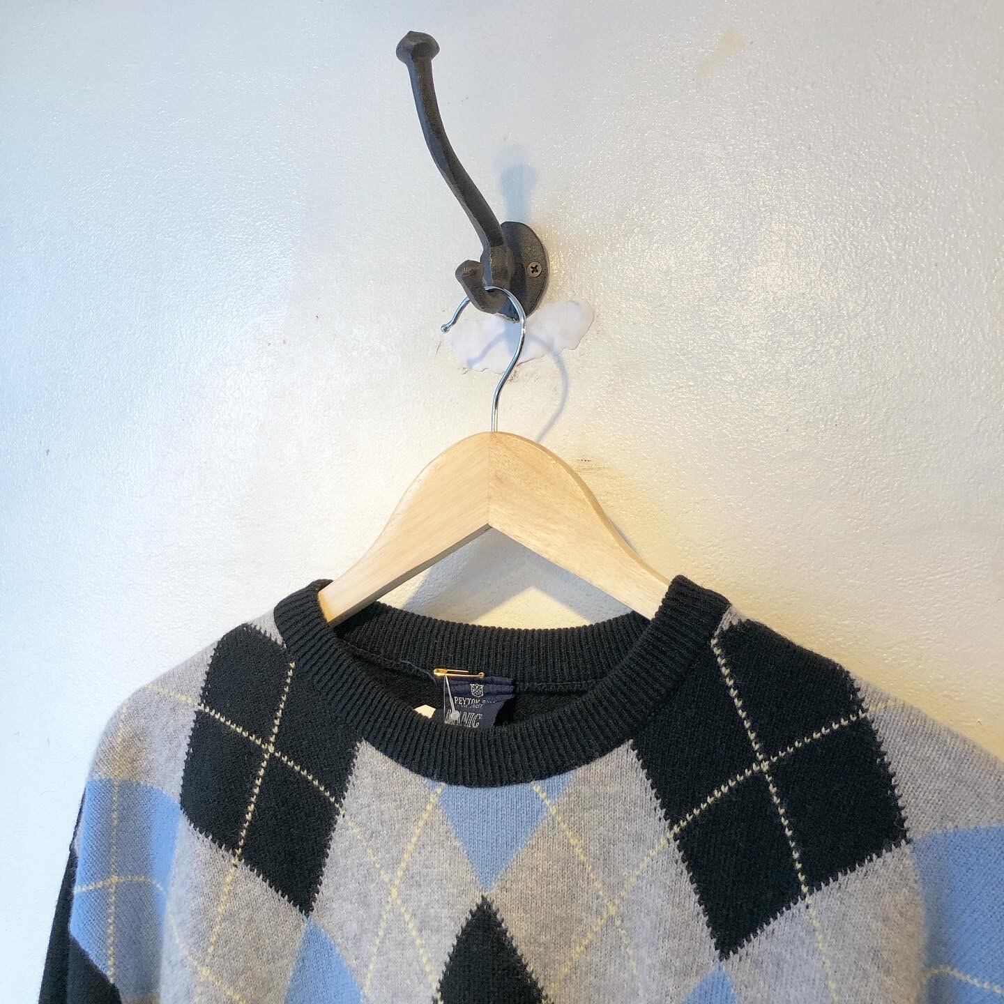 "PEYTON PLACE FOR MEN" Angyle pattern wool crewneck sweater