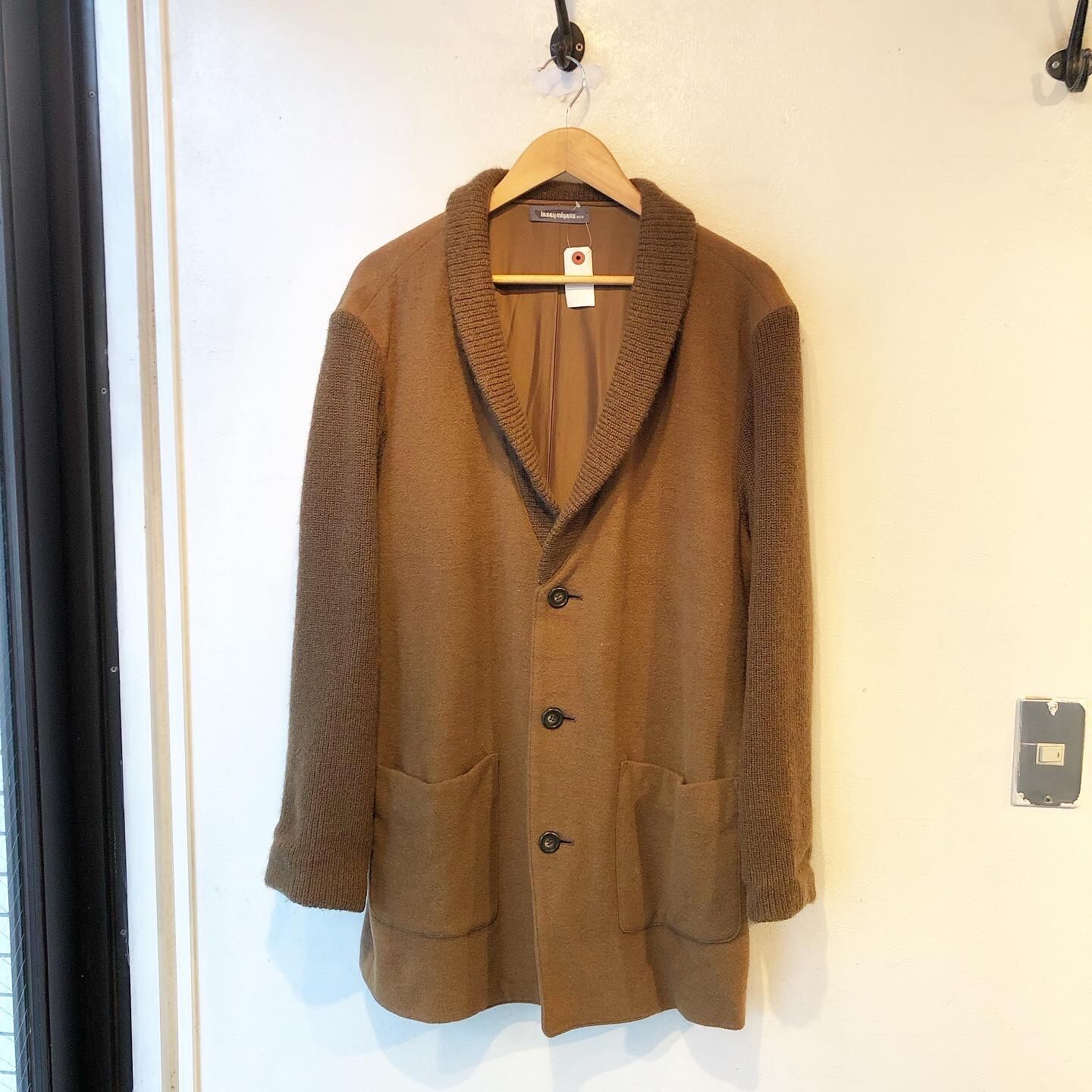 "ISSEY MIYAKE" Wool × Nylon design switch knit coat
