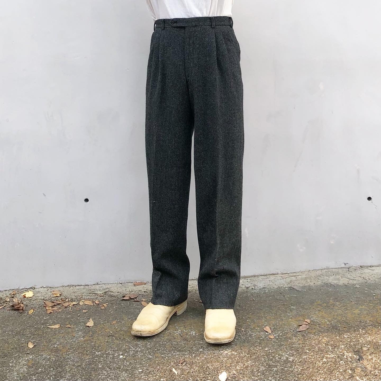 "ARTIGIANO" Wool/Nylon tweed design two tuck pants