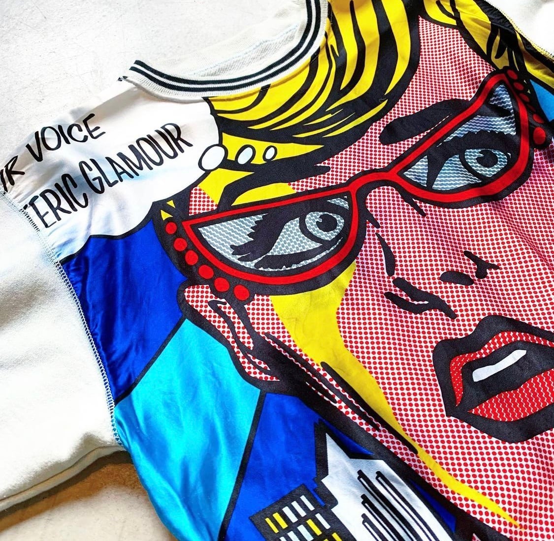 "HYSTERIC GLAMOUR" america comic rayon docking cotton sweat shirt
