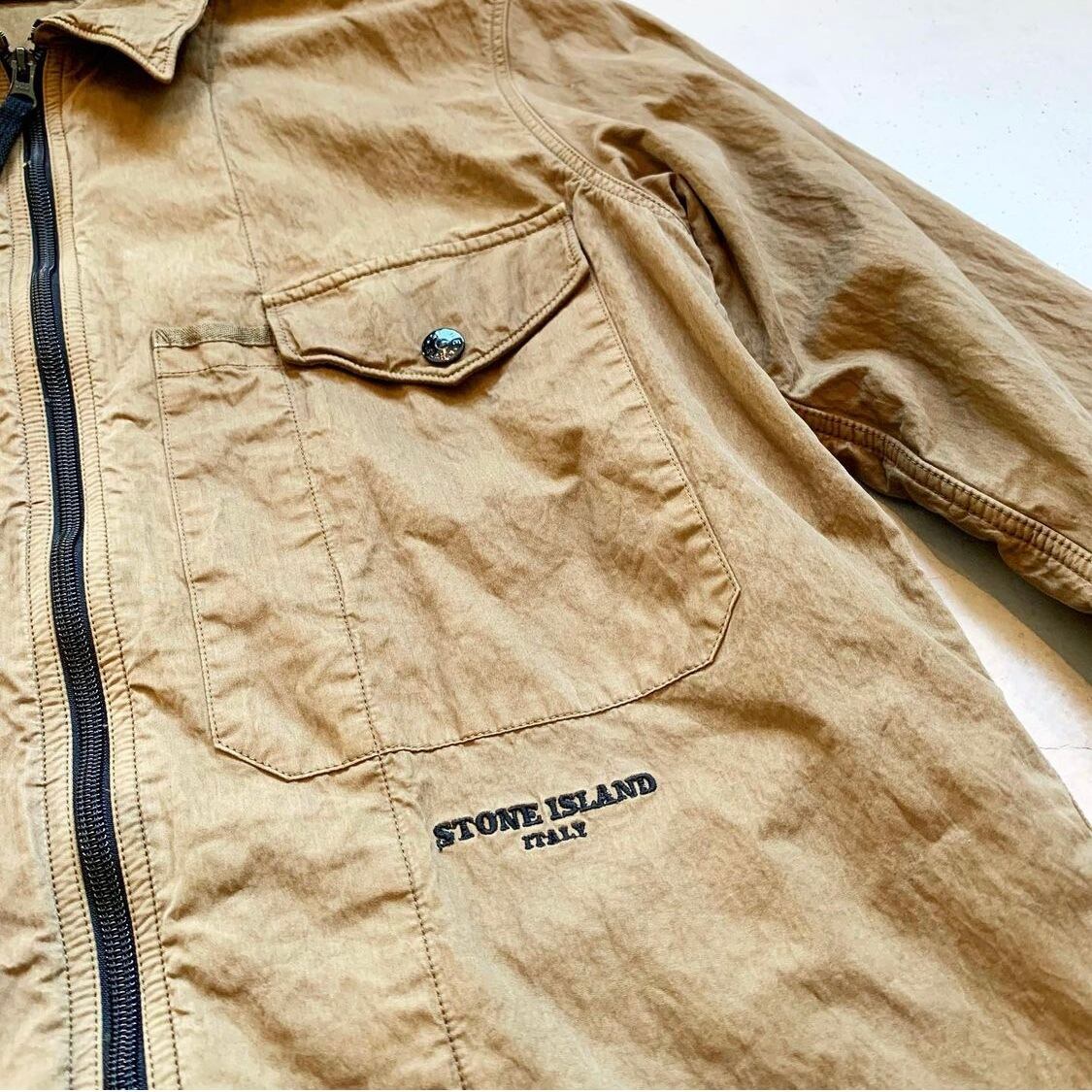 "STONE ISLAND" khaki cotton logo embroidery zip up shirt jacket