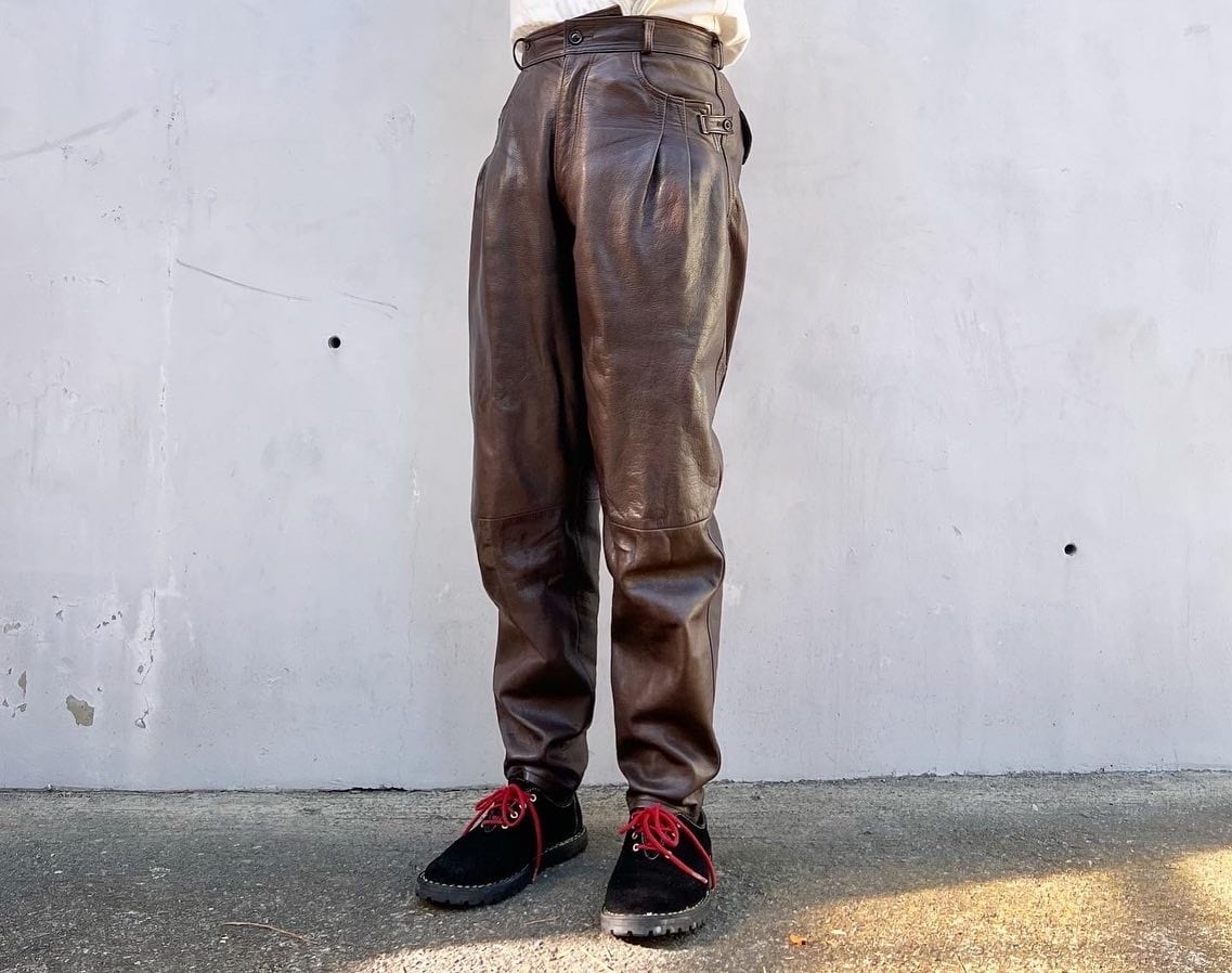 "KENSHO HOMME" dark brown cow leather side strap design pants