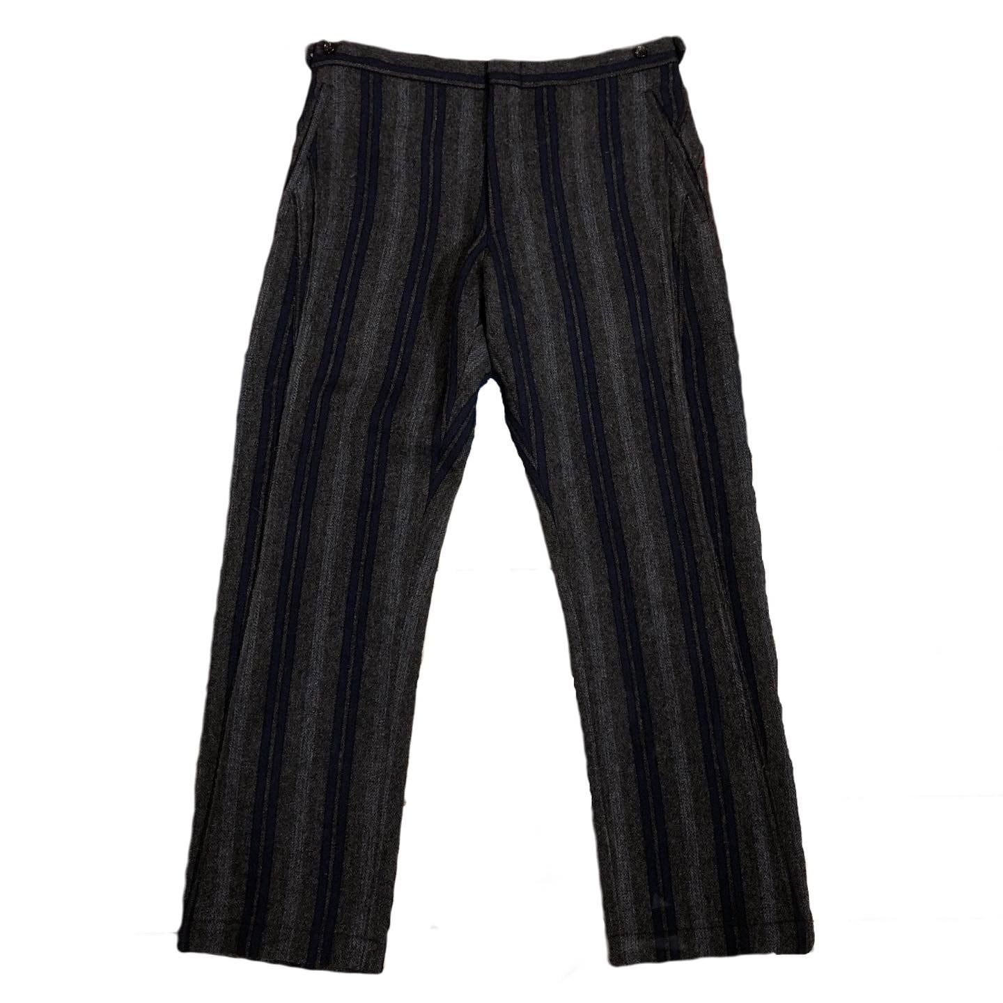 “GARÇONS HOMME PLUS" Curve switch wool design stripe slacks