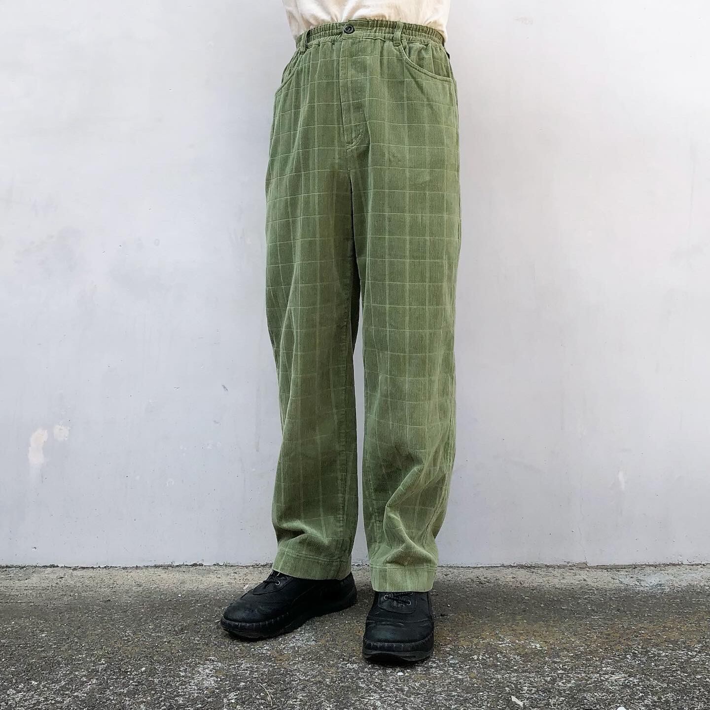 "ISSEY MIYAKE HAI" Mos green design corduroy tuck pants