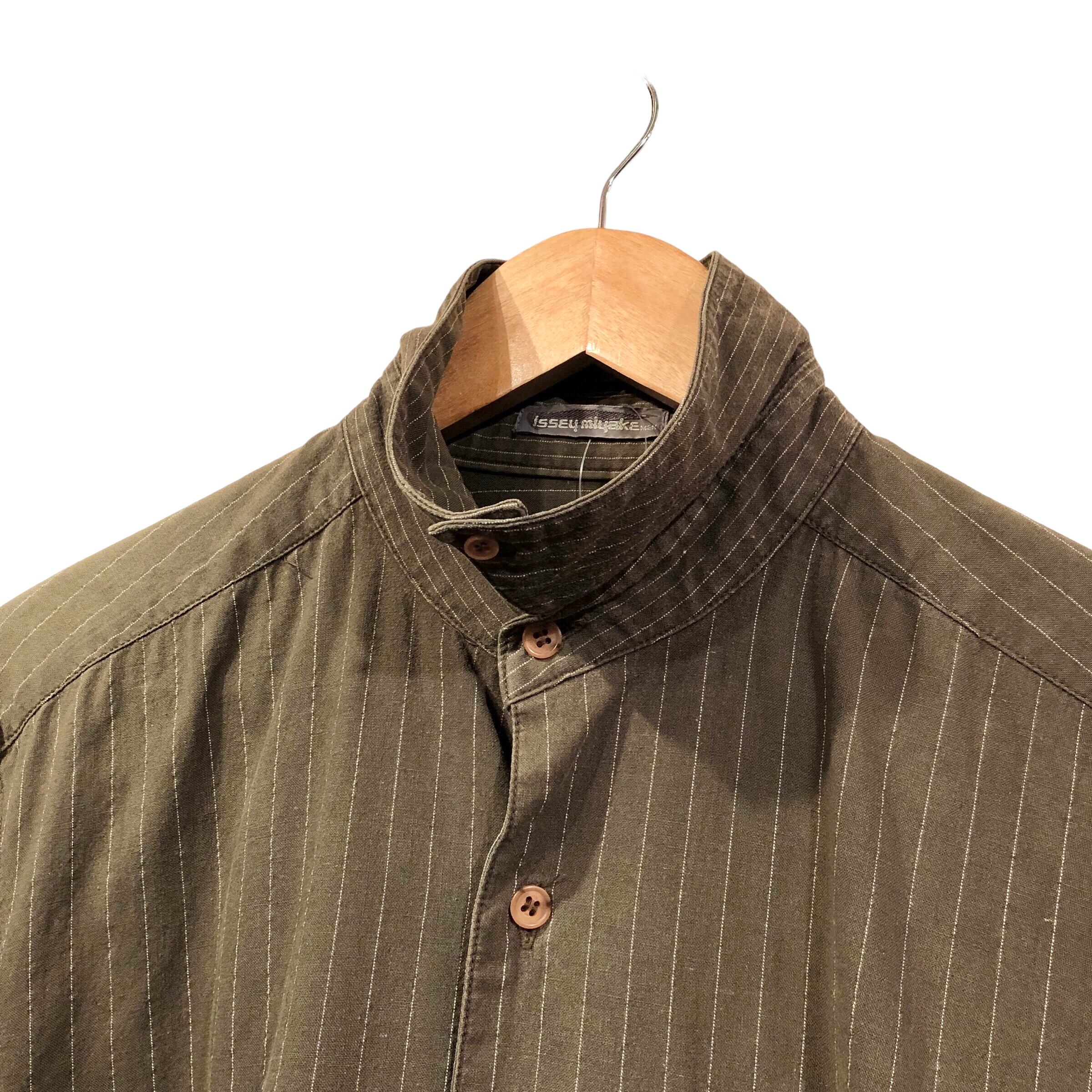 "ISSEY MIYAKE MEN" Switch cotton/poly design L/S 2way collar shirt