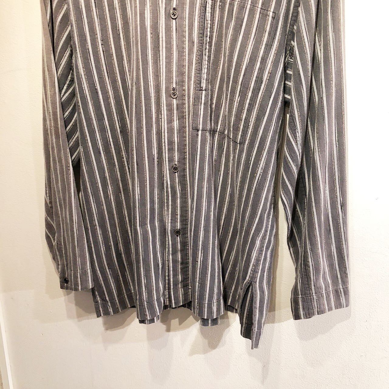 "ISSEYMIYAKE MEN" Stripe cotton L/S stand collar shirt