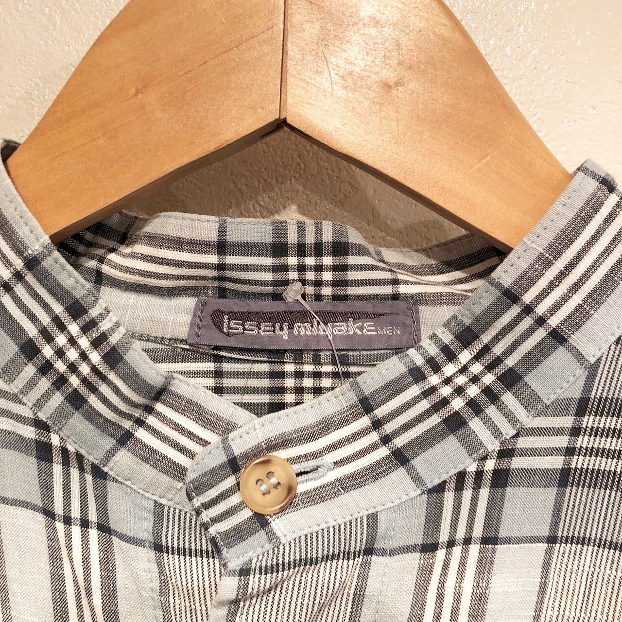 "ISSEYMIYAKE MEN" check cotton L/S band collar shirt