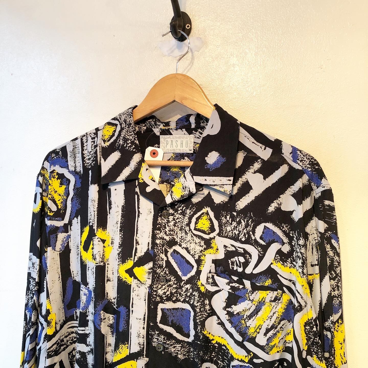 "PASHU" Unique pattern rayon design L/S open collar shirt