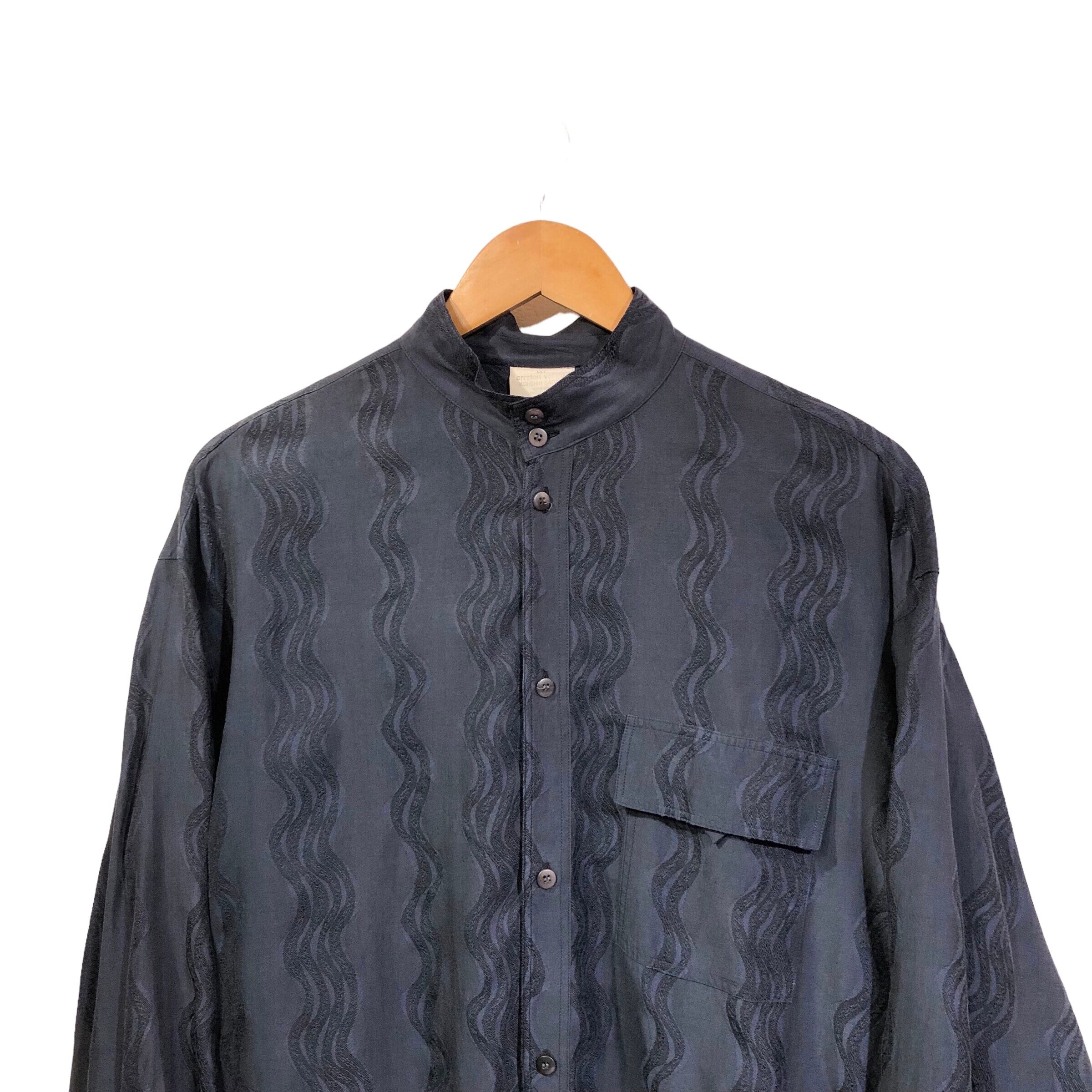 "arrston volaju" Wave pattern cupra/cotton design L/S stand collar shirt