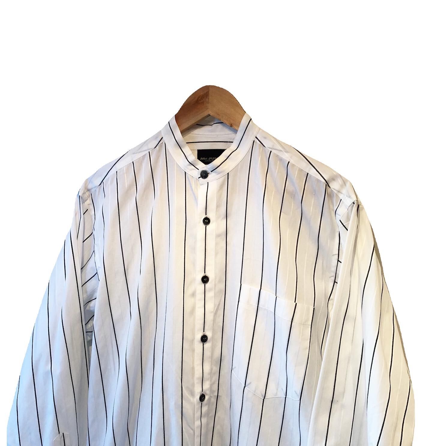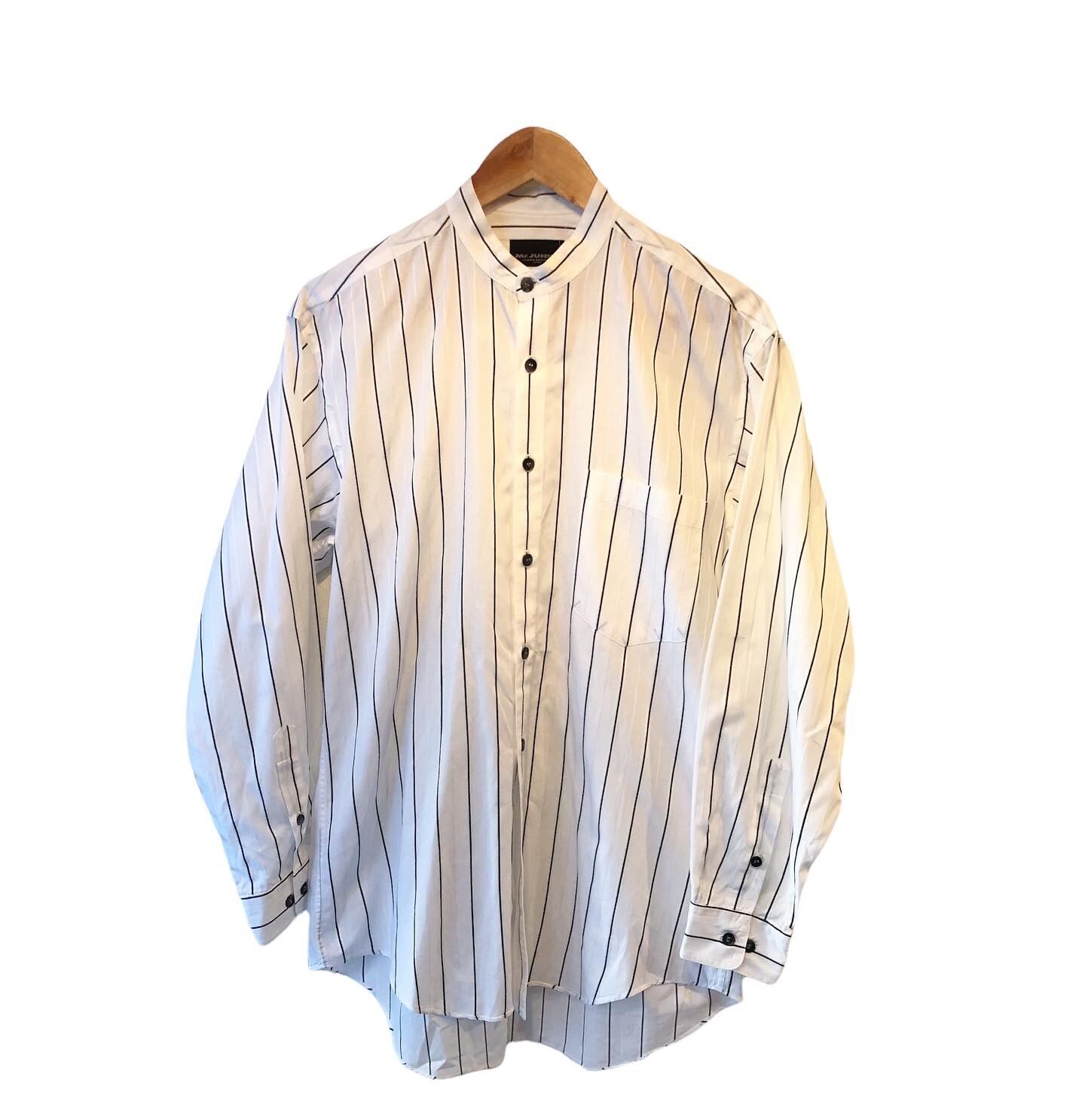 "Mr.JUNKO" Stripe cotton design L/S band collar shirt