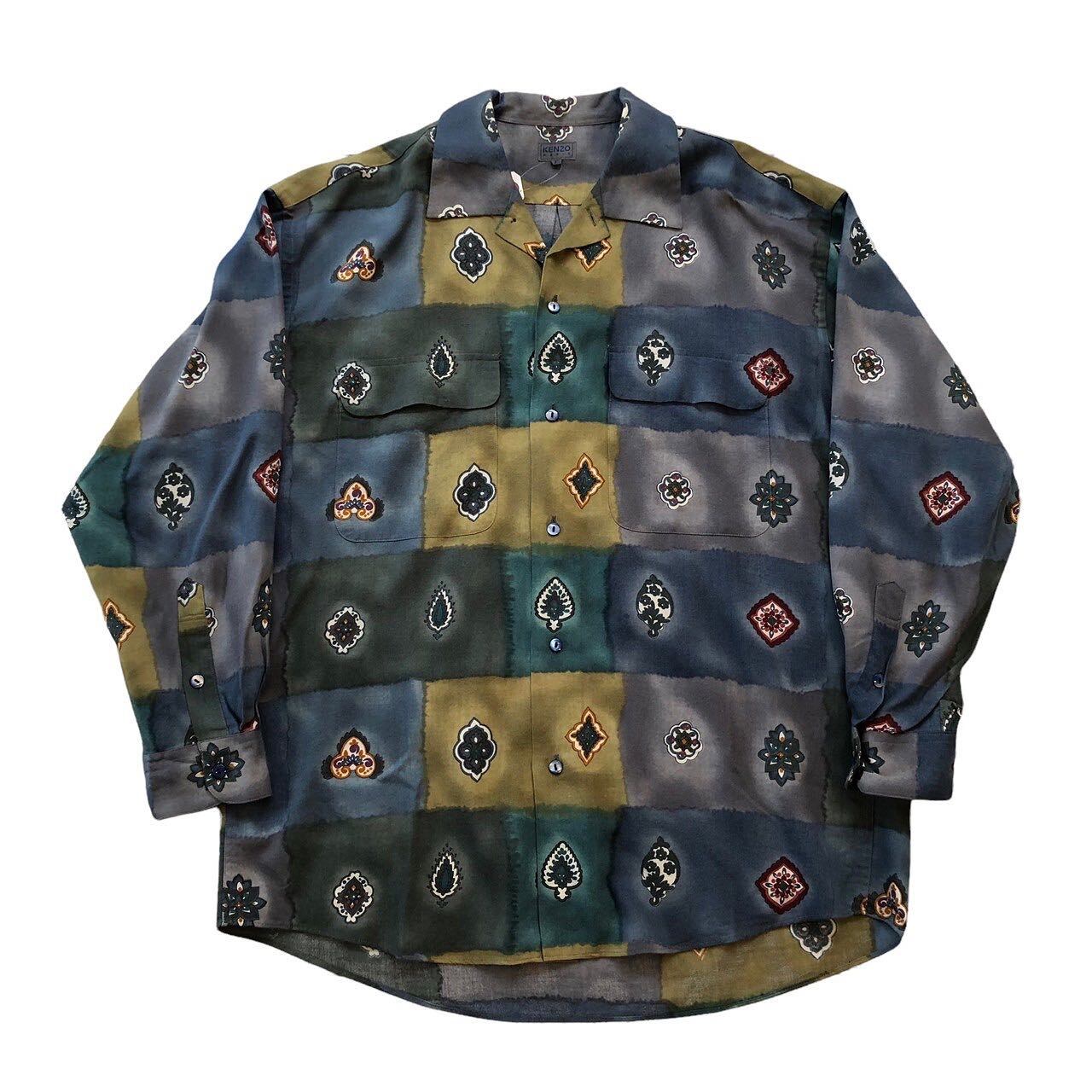 "KENZO" Unique pattern open collar L/S shirt