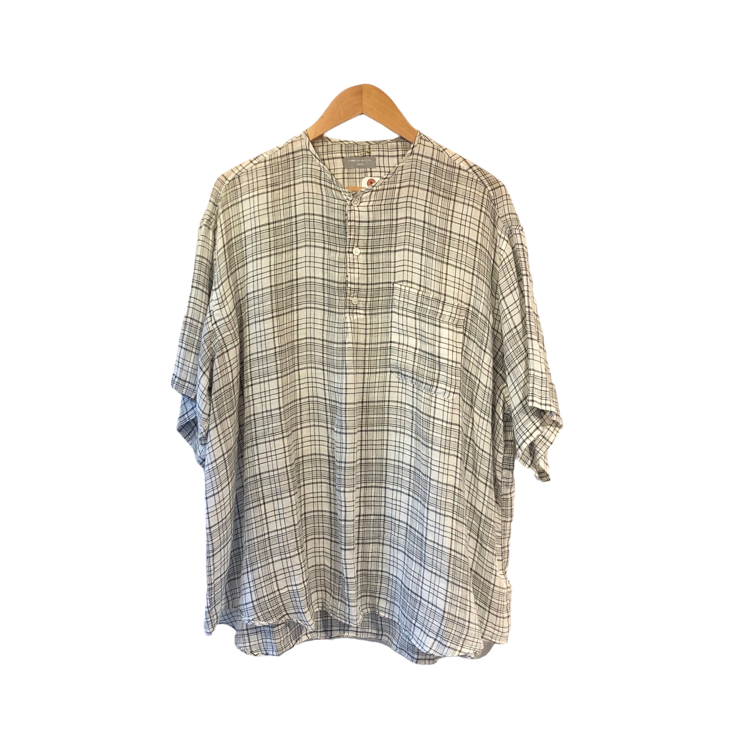 "GARCONS HOMME" Check linen S/S no collar pullover shirt