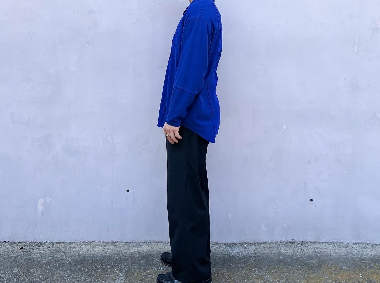"ISSEYMIYAKE HAI" Blue rayon design open collar L/S shirt