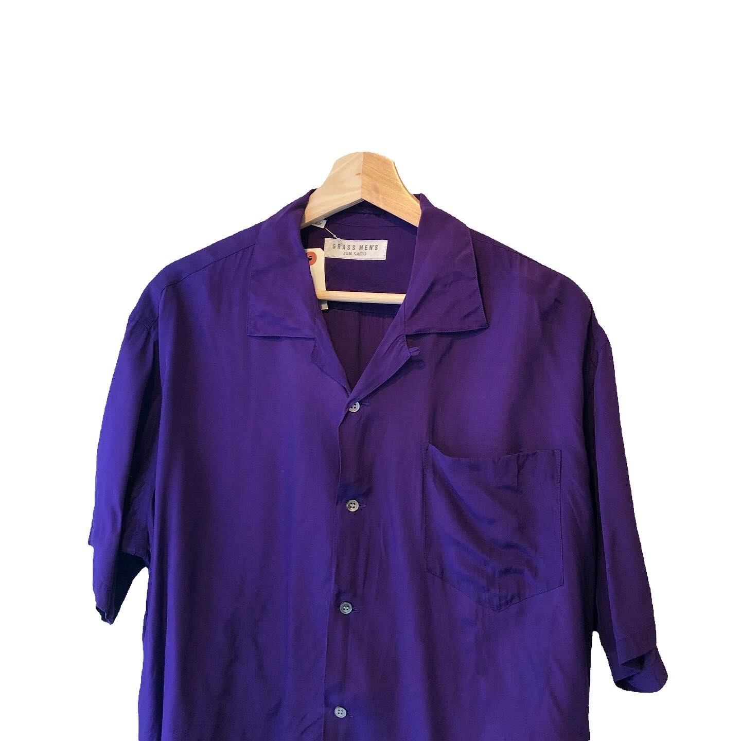 "GRASS MEN'S" Purple rayon design S/S open collar shirt