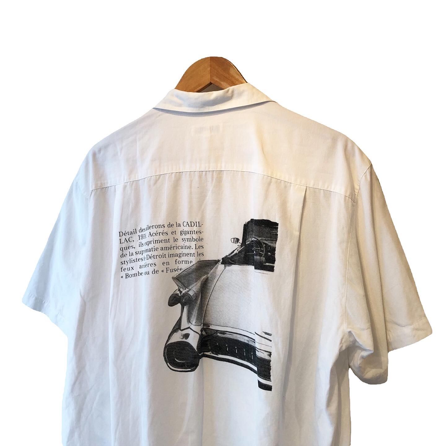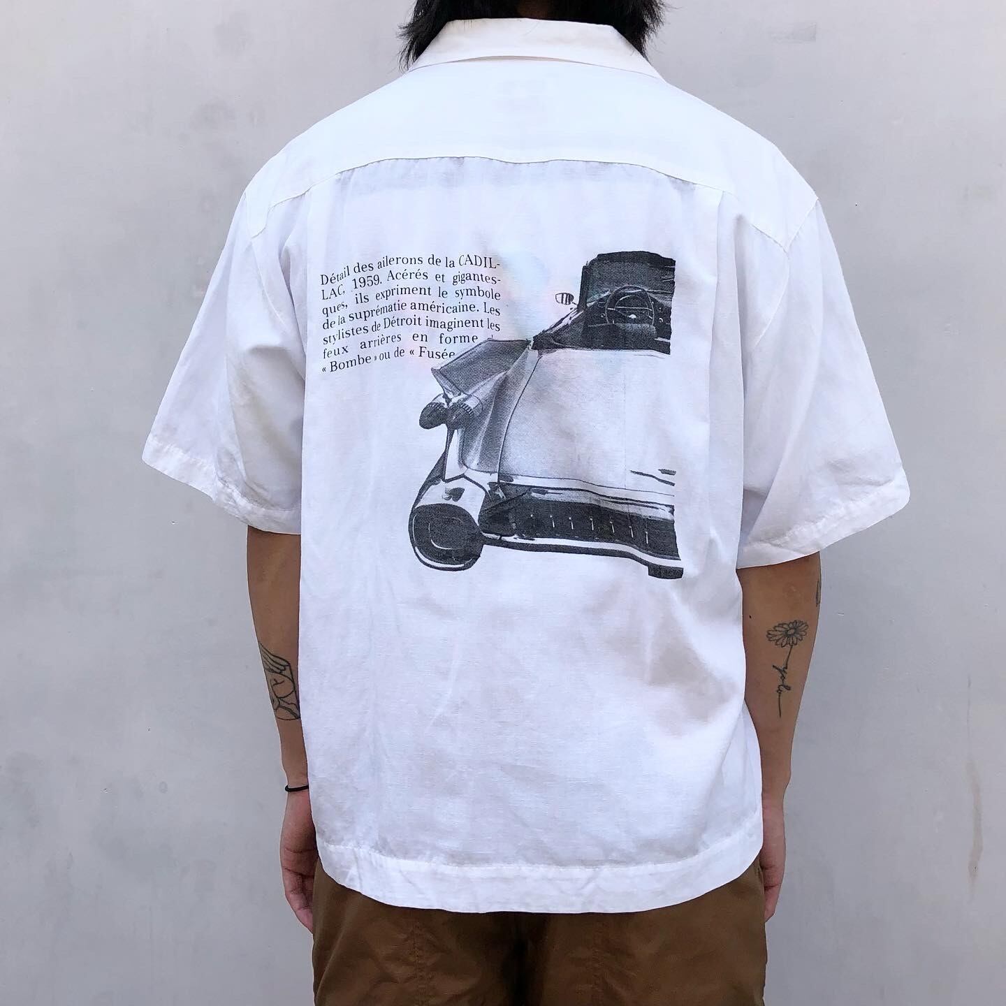 DOMON" White rayon/cotton/linen design S/S back printed shirt