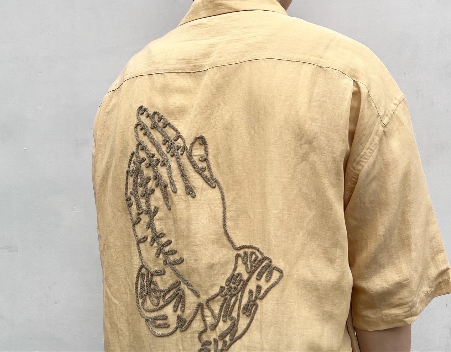 "TETE HOMME" Light beige design rayon/linen S/S shirt